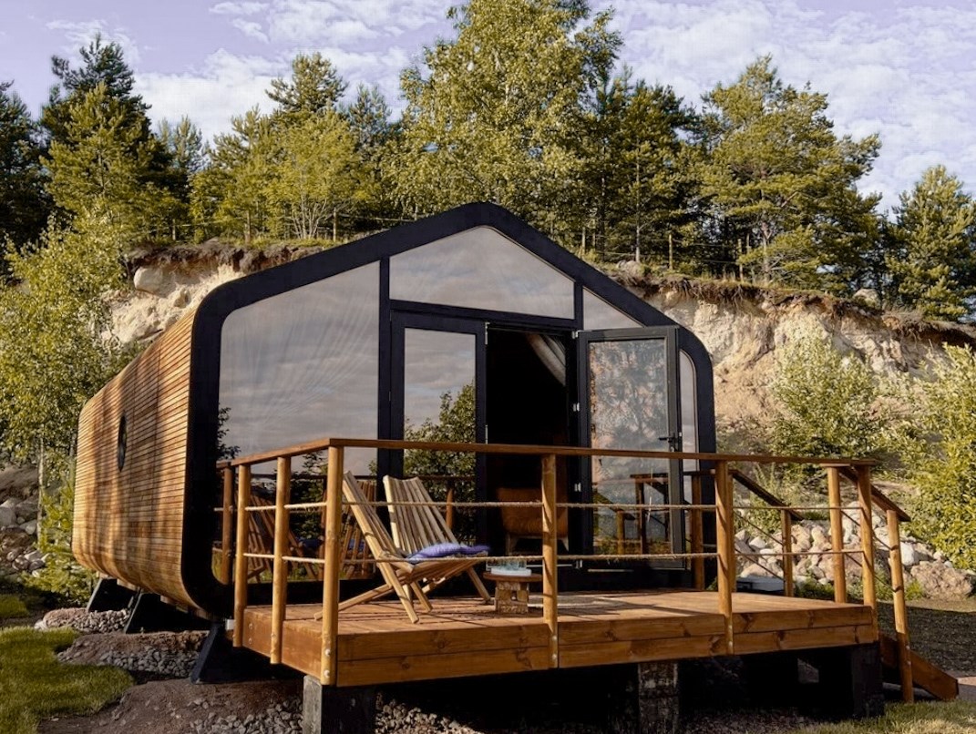Домики:Сафари-тент, Дом в лесу, Модульный дом
