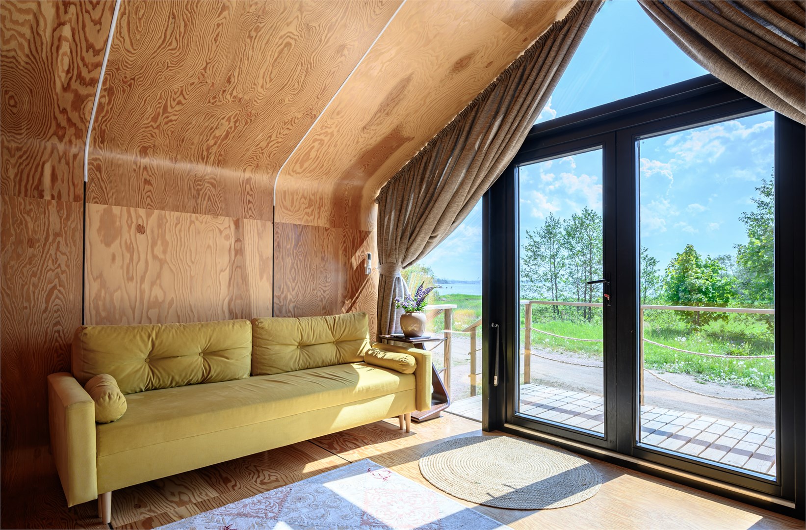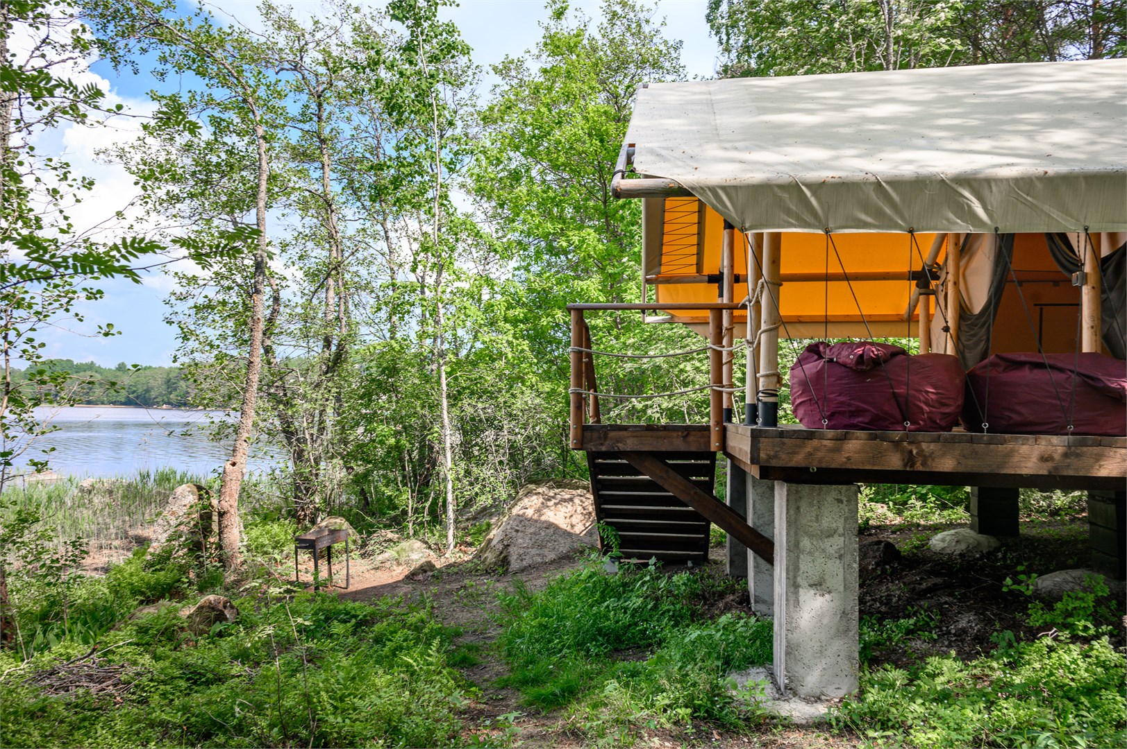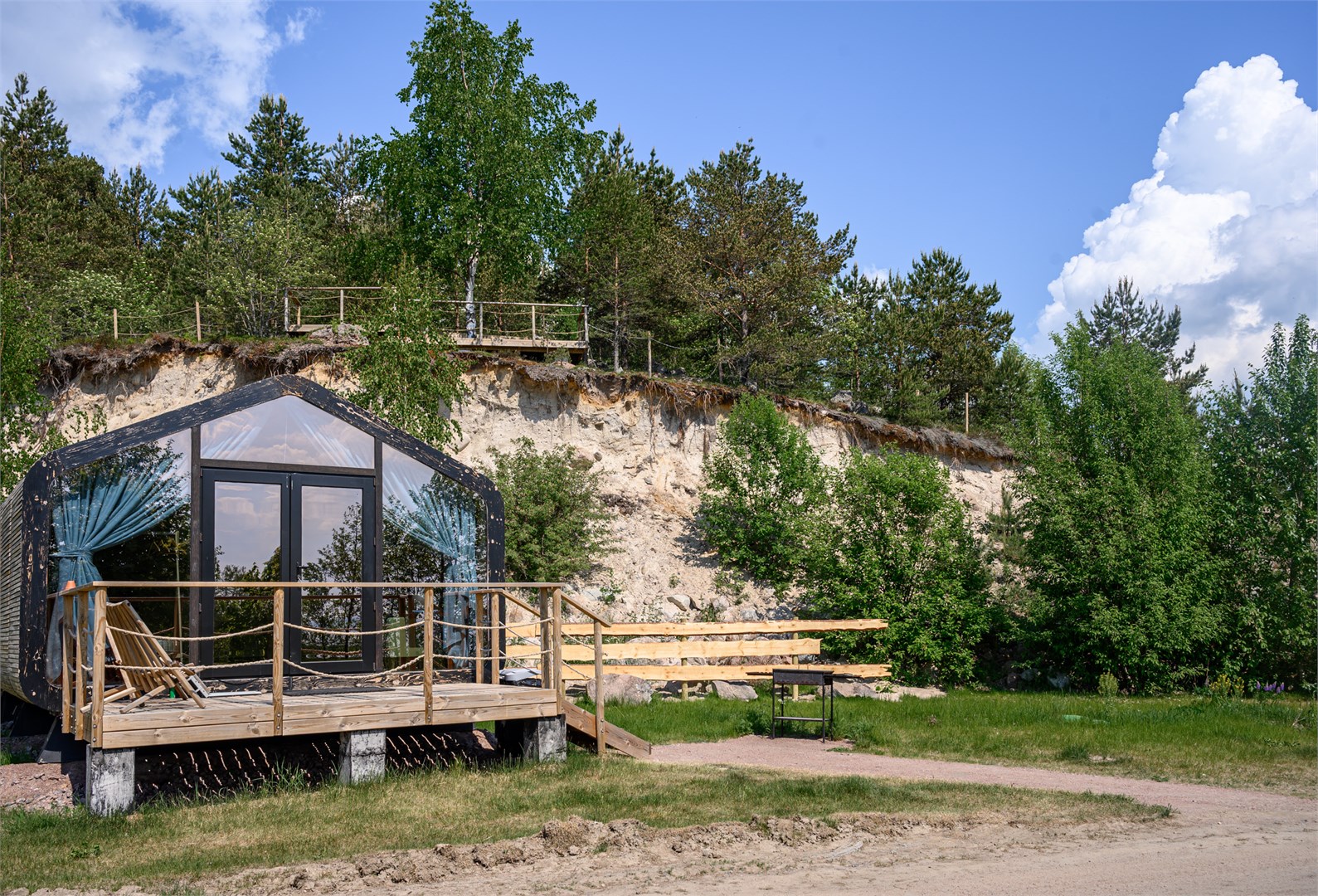 Глэмпинг «Фрегат» расположился на охраняемом частном полуострове в Ленинградской области, всего в семи минутах езды от исторического центра Выборга. Это место идеально подходит для тех, кто ценит комфорт загородного отдыха в сочетании с близостью к городской инфраструктуре и культурным достопримечательностям.