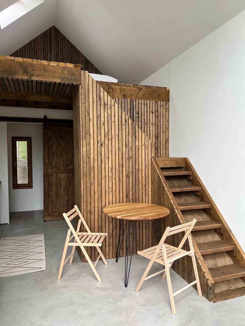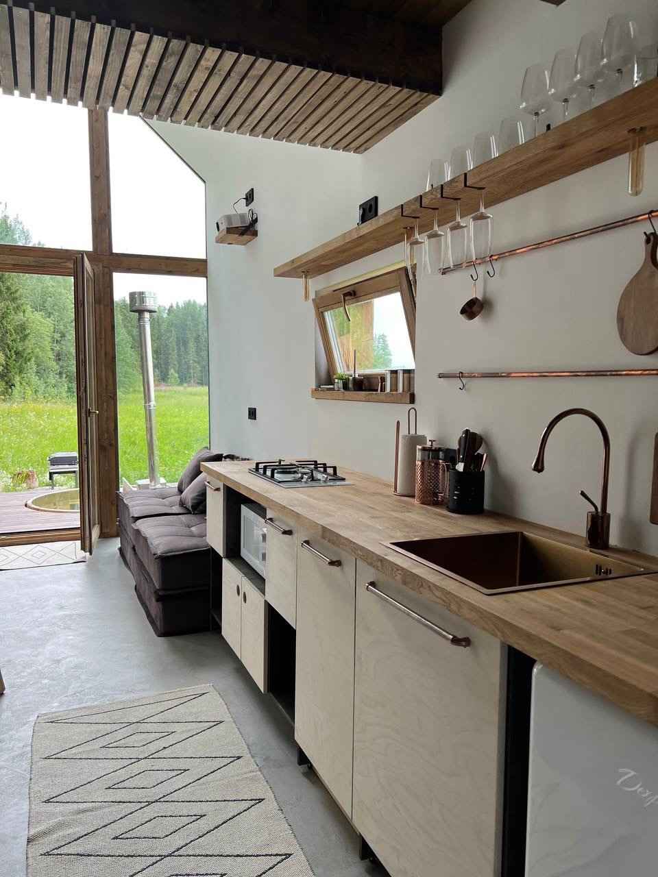 Гардероб Диван Мини-кухня Проектор Санузел Стол Стулья Теплый пол Гель для душа Душ Мыло Набор полотенец Умывальник Тапочки Халат Фен Шампунь Возможно размещение с животными при предварительном согласовании Wi-Fi Кофемашина Микроволновая печь Плита Посуда Посудомоечная машина Тостер Чайник Холодильник Парковка Мангал Терраса Шезлонг Фурако (купель)