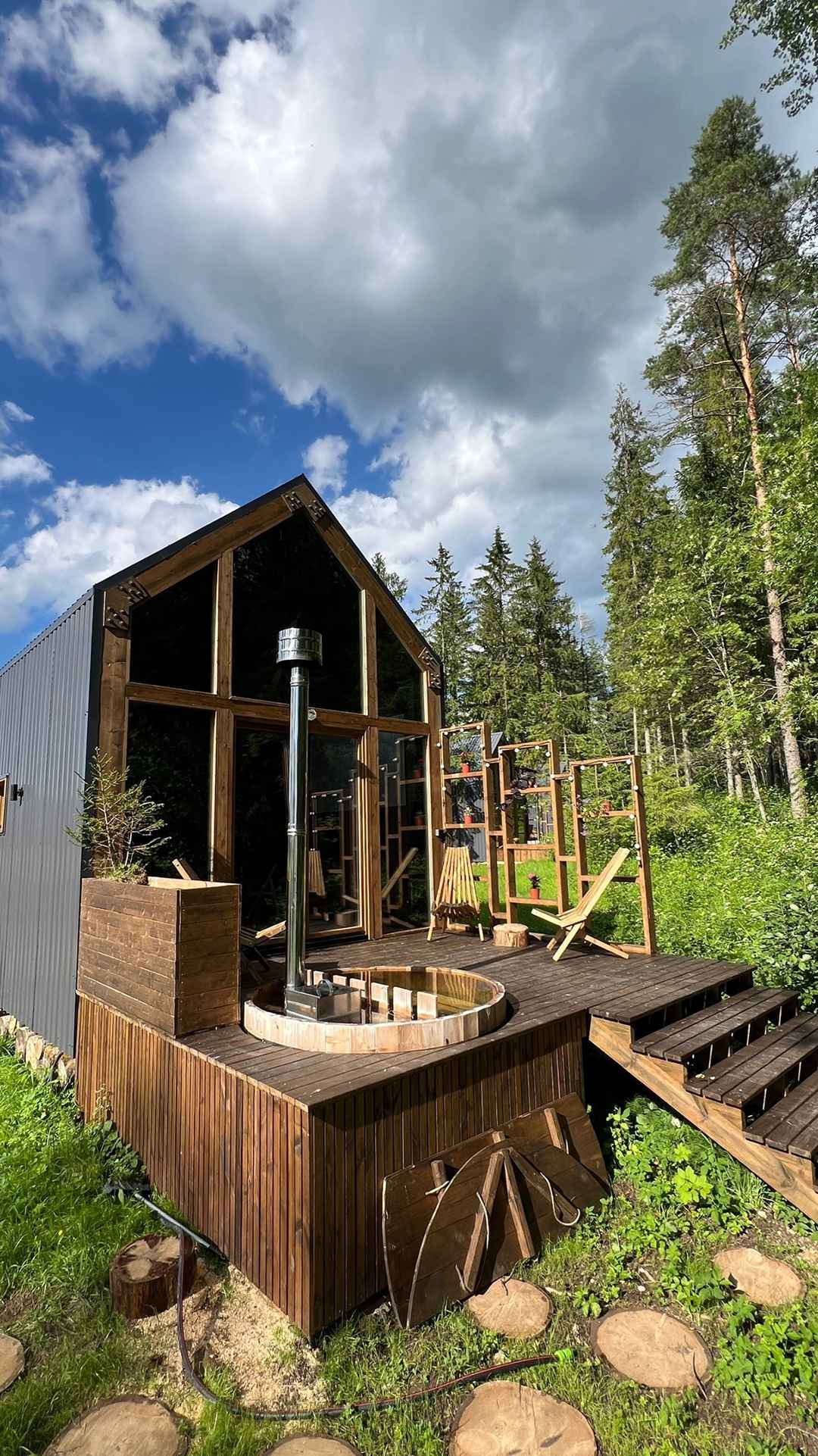 29element – это современный глэмпинг, расположенный в Лопухинском сельском поселении Ленинградской области. Для проживания в глэмпинге 29element доступны пять стильных барнхаусов, каждый из которых оснащен панорамными окнами, позволяющими наслаждаться видами густого леса. В домах предусмотрены современные удобства, включая проектор для вечерних кинопросмотров и горячую купель на открытом воздухе, создавая атмосферу уюта и комфорта. Расположение в часе езды от Санкт-Петербурга делает этот глэмпинг идеальным местом для быстрого побега на природу от городской суеты.