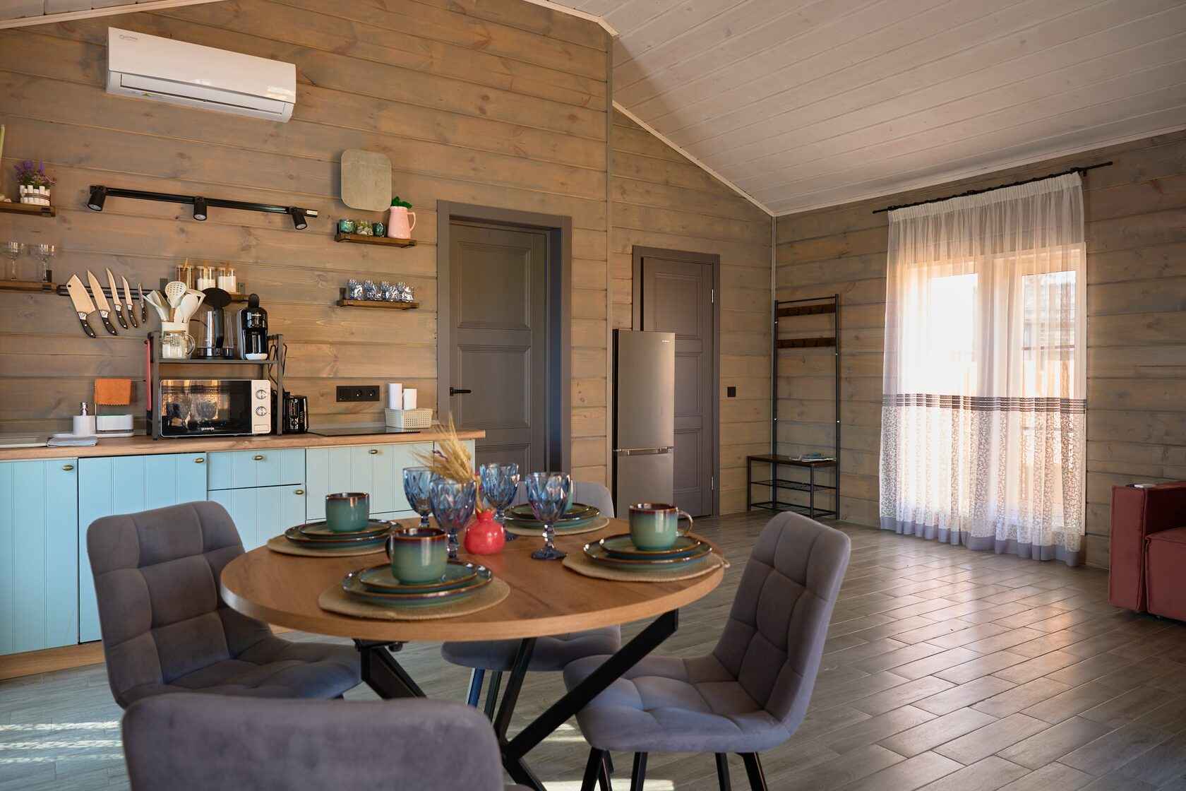 На территории глэмпинга представлены уютные барнхаусы, оснащённые всем необходимым для комфортного проживания. Каждый объект размещения продуман до мелочей: удобные кровати, постельное бельё, отопление — всё для того, чтобы гости чувствовали себя как дома, находясь при этом в окружении природы.