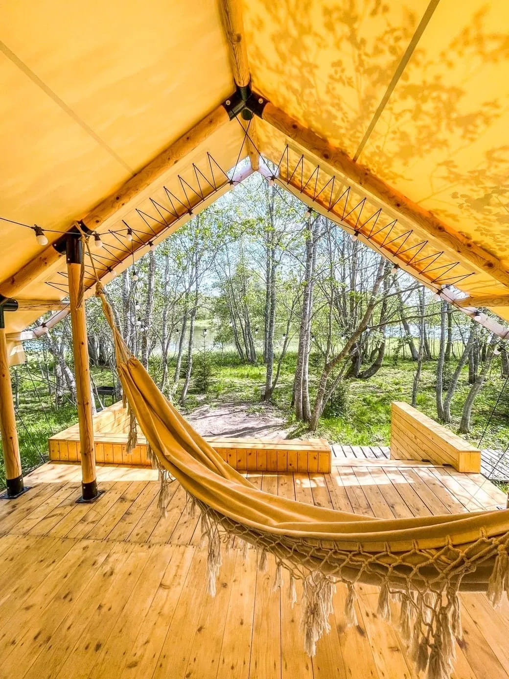 – пожить в необычных треугольных домах или сафари-тентах на базе отдыха