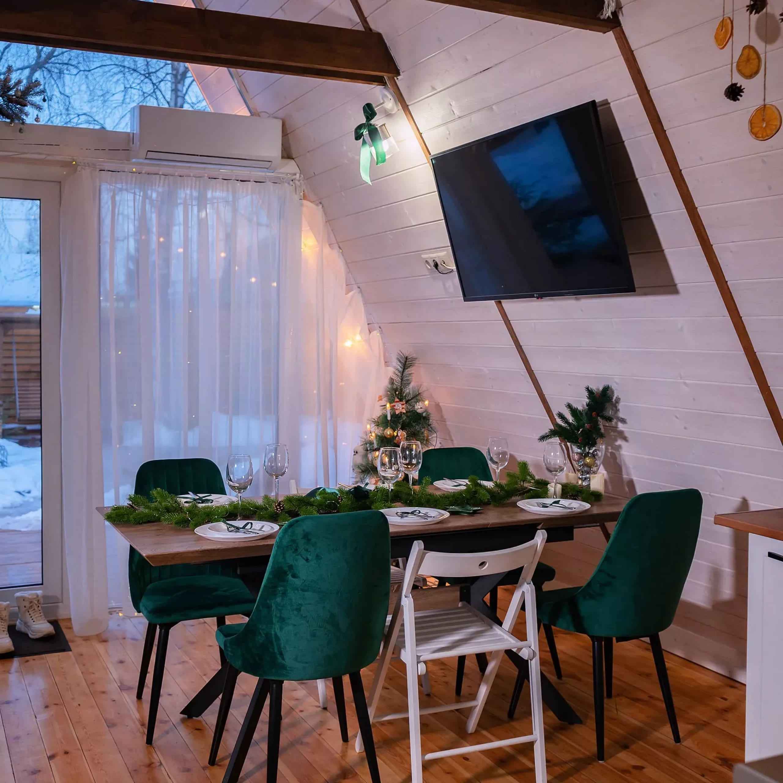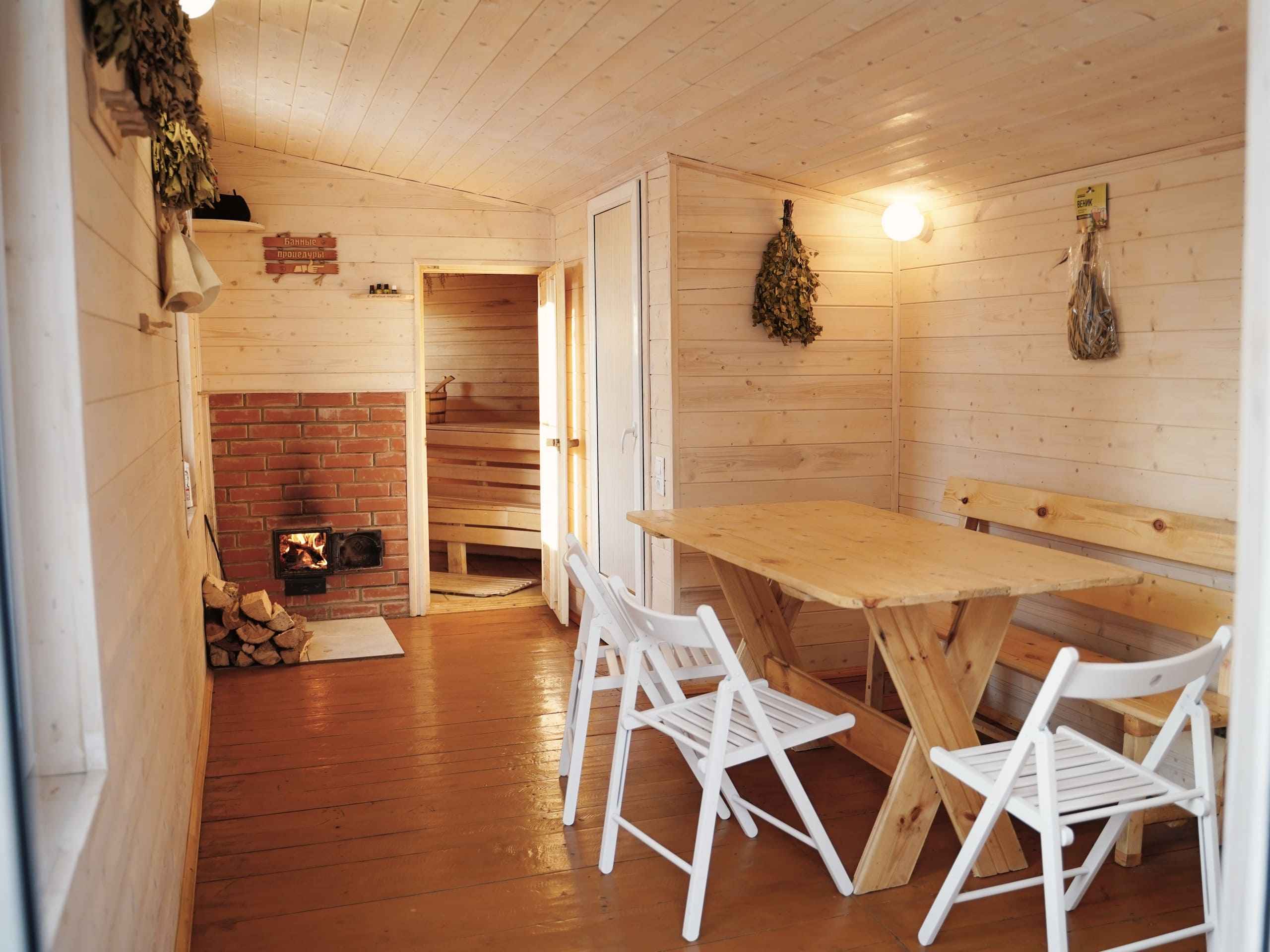 — Безлимитная баня на дровах на всю ночь в каждом Aframe доме за доп.оплату.