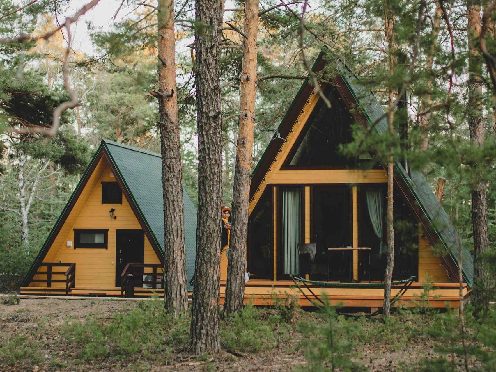 Тип глэмпинга:А-фрейм, Дом в лесу