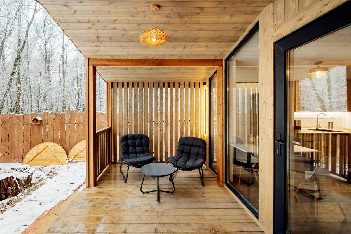 Тип глэмпинга:Барнхаус, Дом в лесу