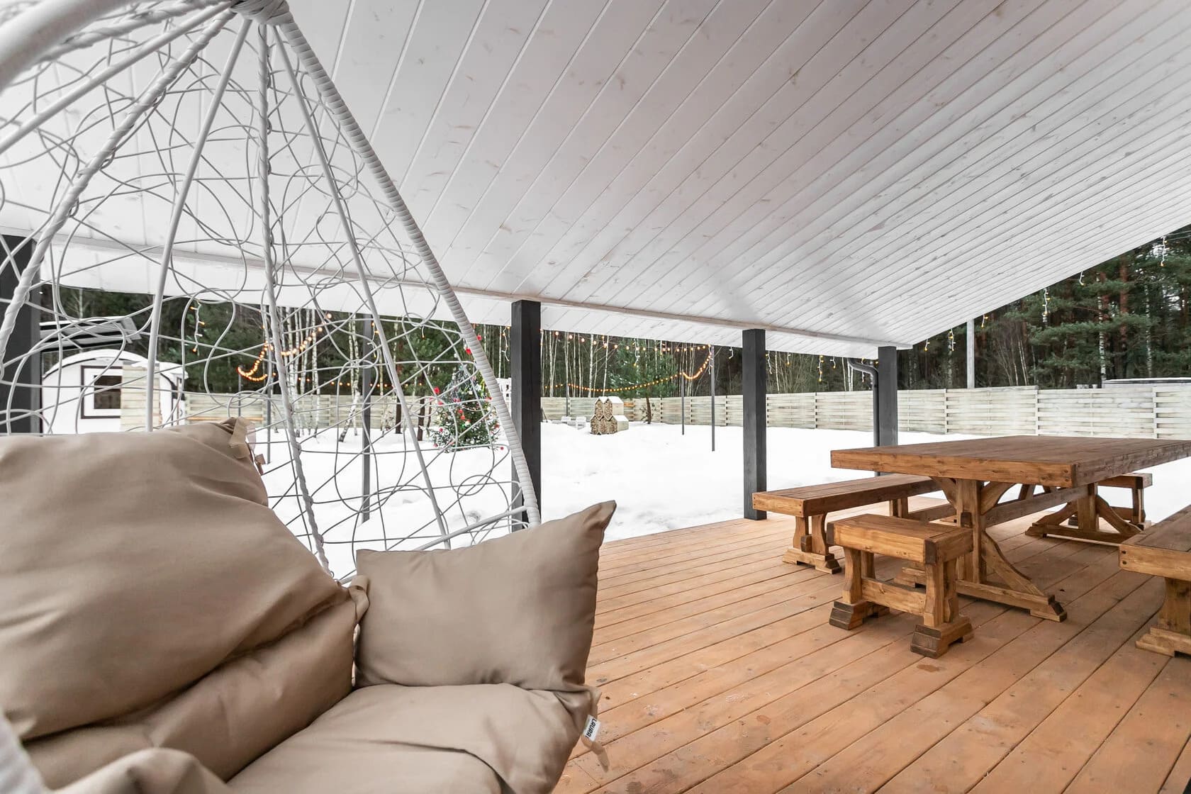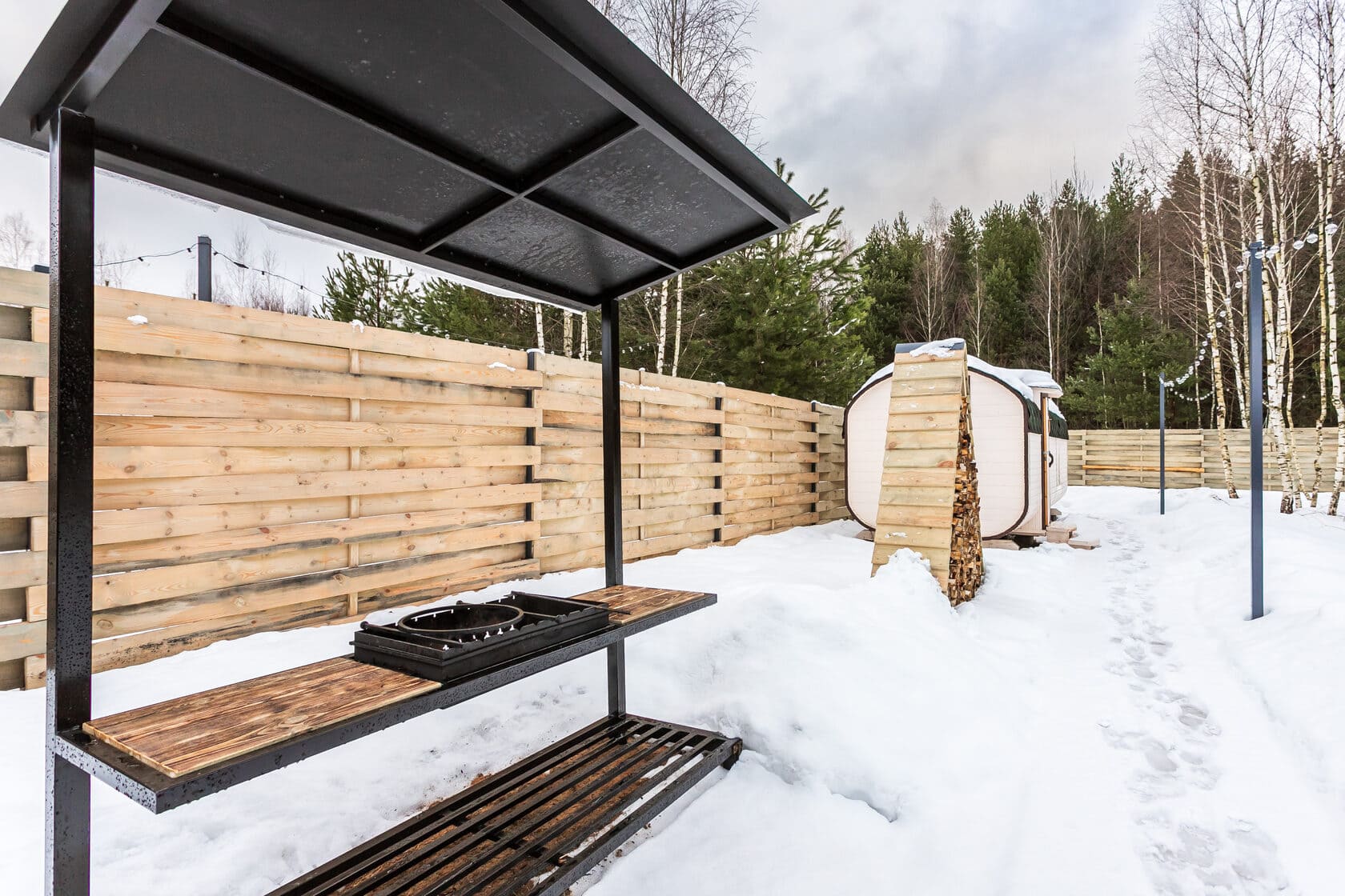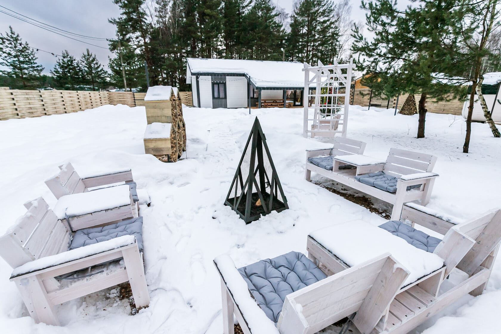 Каждый домик расположен на отдельном, огороженном участке просторной территории в 12 соток со своей костровой и мангальной зоной. В глэмпинге БлагоДать в Подмосковье вы сможете насладиться тишиной и покоем, отдохнуть от городской суеты и провести время с семьей или друзьями. А также вы сможете отправиться на прогулки по заснеженному лесу, покататься на лыжах или коньках, понаблюдать за птицами, прилетающими к кормушке на территории глэмпинга.