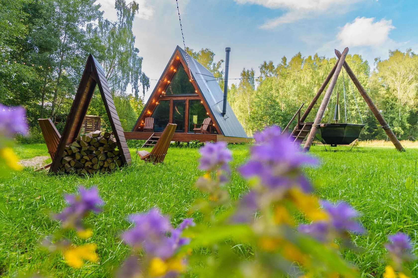 Тип глэмпинга:А-фрейм, Эко-дом