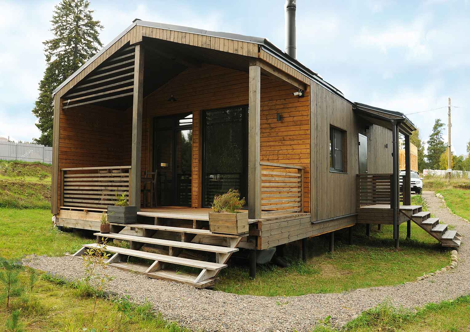 Тип глэмпинга:Барнхаус, Дом в лесу, Модульный дом