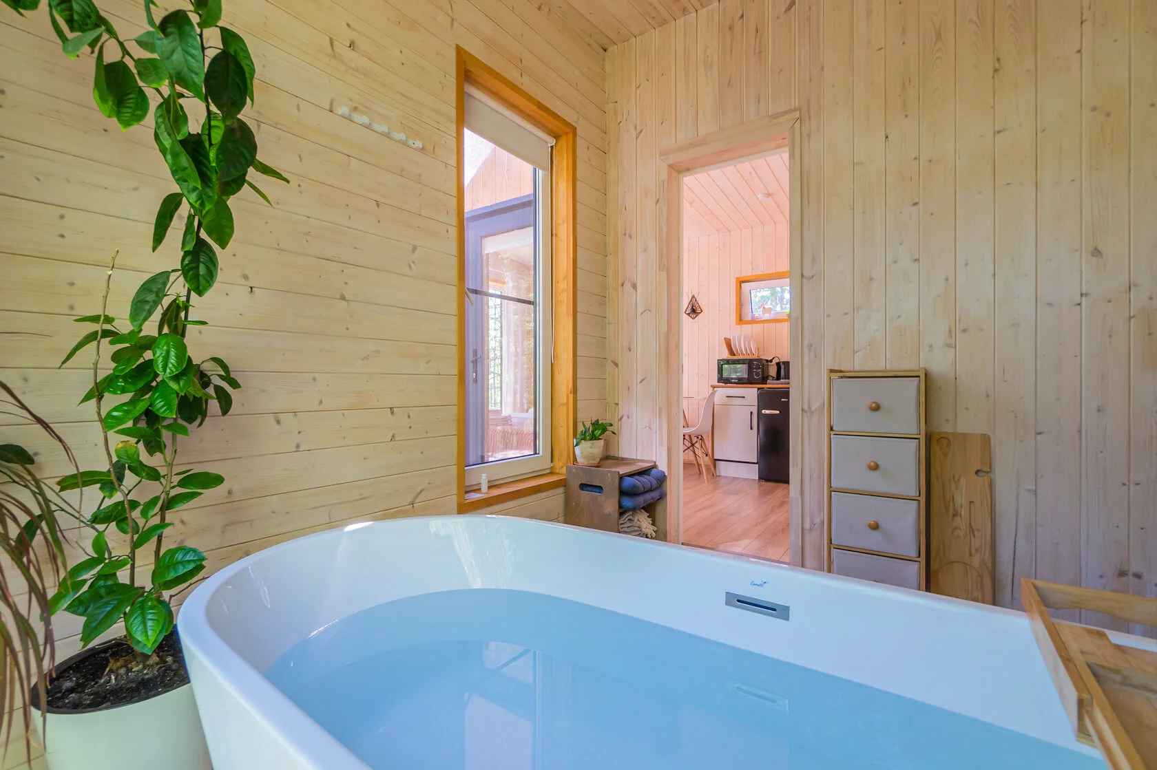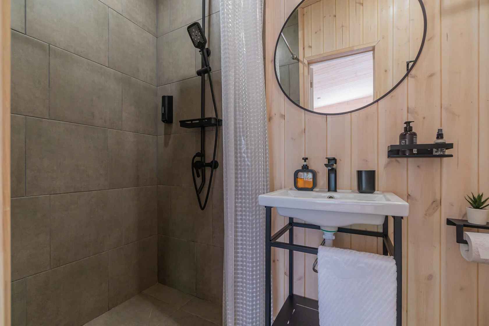 Dushevno House – это глэмпинг в хвойном лесу Карельского перешейка, расположенный в коттеджном поселке Карасаари Ленинградской области всего в 40 минутах от Санкт-Петербурга. Для проживания в глэмпинге Dushevno House доступны три варианта размещения: уединенные домики «Весна» и «Осень» с ванной у панорамного окна и уютный домик «Лето». Номера оборудованы теплыми полами, а для досуга есть Smart TV с подпиской на IVI. В домике «Весна» и «Осень» есть проекторы. Для релакса возле домиков установлены подогреваемые купели фурако и сибирские чаны под открытым небом и настоящая русская баня. Любители активного отдыха могут взять в аренду сап-борды и велосипеды, а также поиграть в бадминтон. Провести уютные вечера с друзьями и близкими можно в общей костровой зоне.