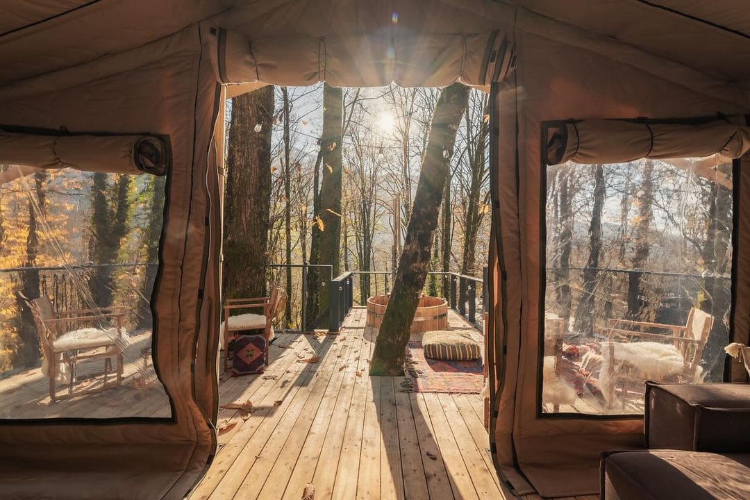 Тип глэмпинга:А-фрейм, Дом на дереве, Сафари-тент