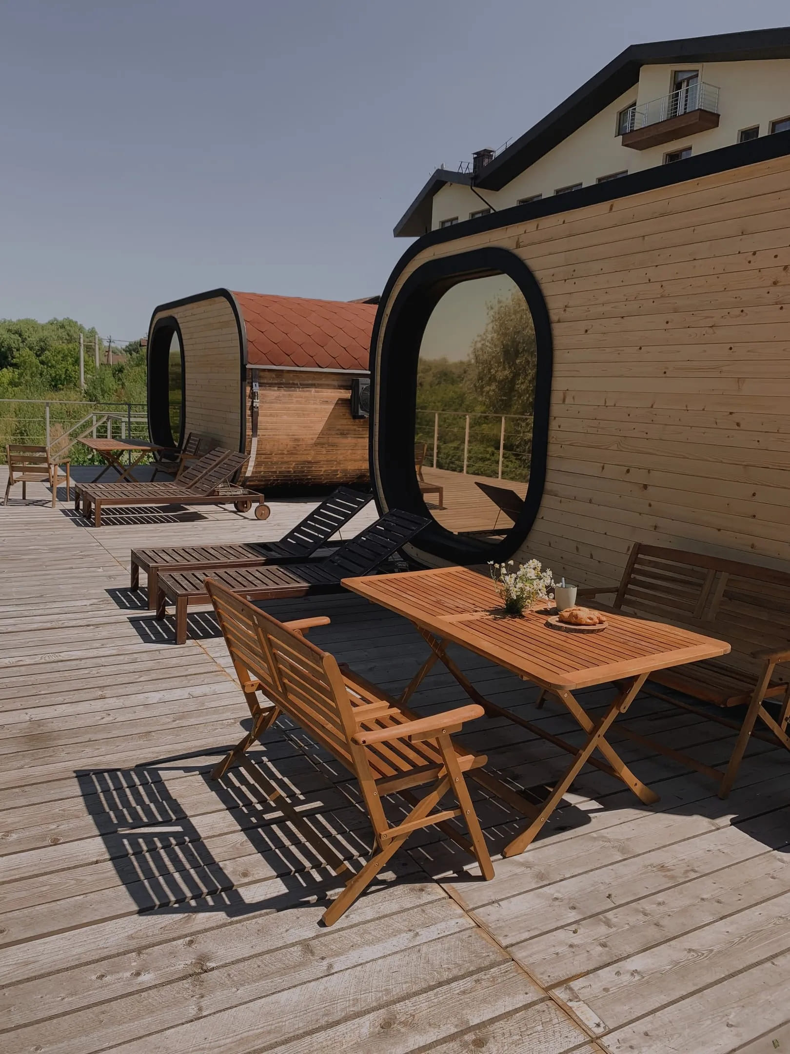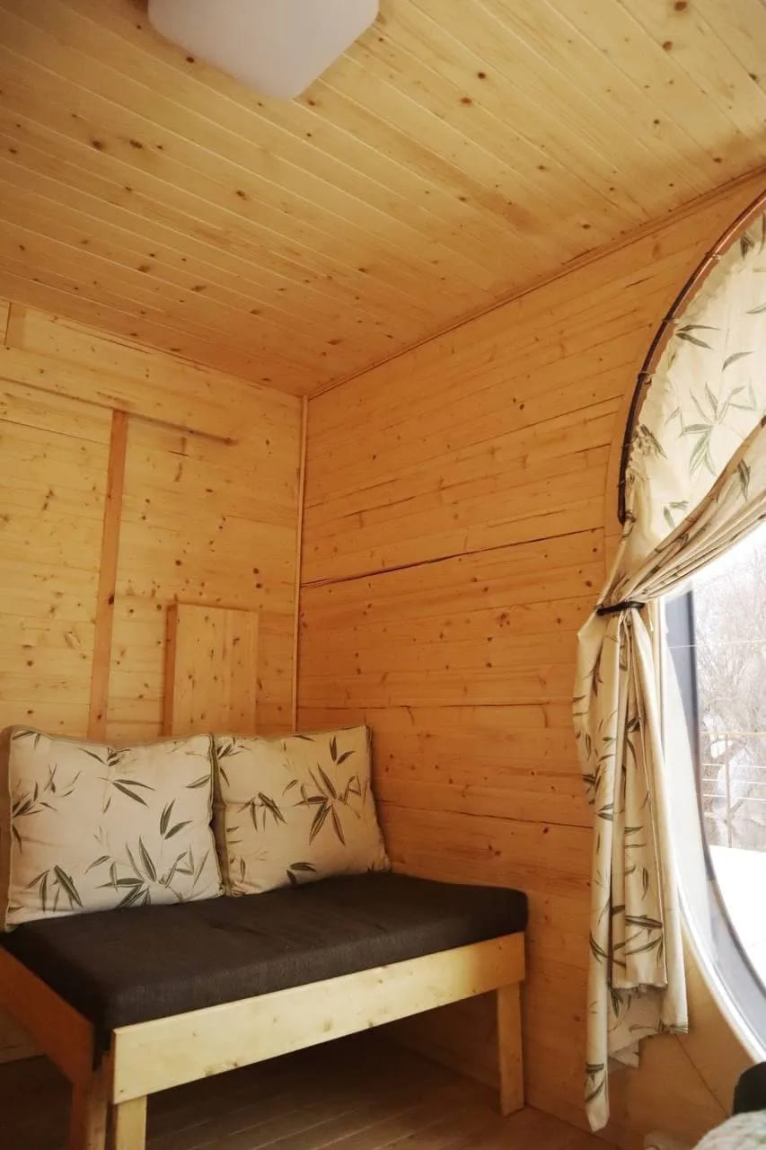 Следующим приобретением стали эко-капсулы — маленькие всепогодные романтичные домики с панорамными окнами и удобствами. Ребята были первыми в стране, кто установил такие капсулы. Они стали очень популярны и на данный момент функционируют круглый год. Для строительства глэмпинга использовались деревянные помосты и сафари-тенты. И к старинному выражению «гуляй-город», что означает быстровозводимое сооружение из телег и щитов, добавилось новое значение – отдых в палатках с комфортом. Слились в одно «гламурный» и «кемпинг». Это уже не походные палатки — здесь и кровати, и мебель, и электричество, но еще не стационарные домики. Такое вот комфортное единение с природой.