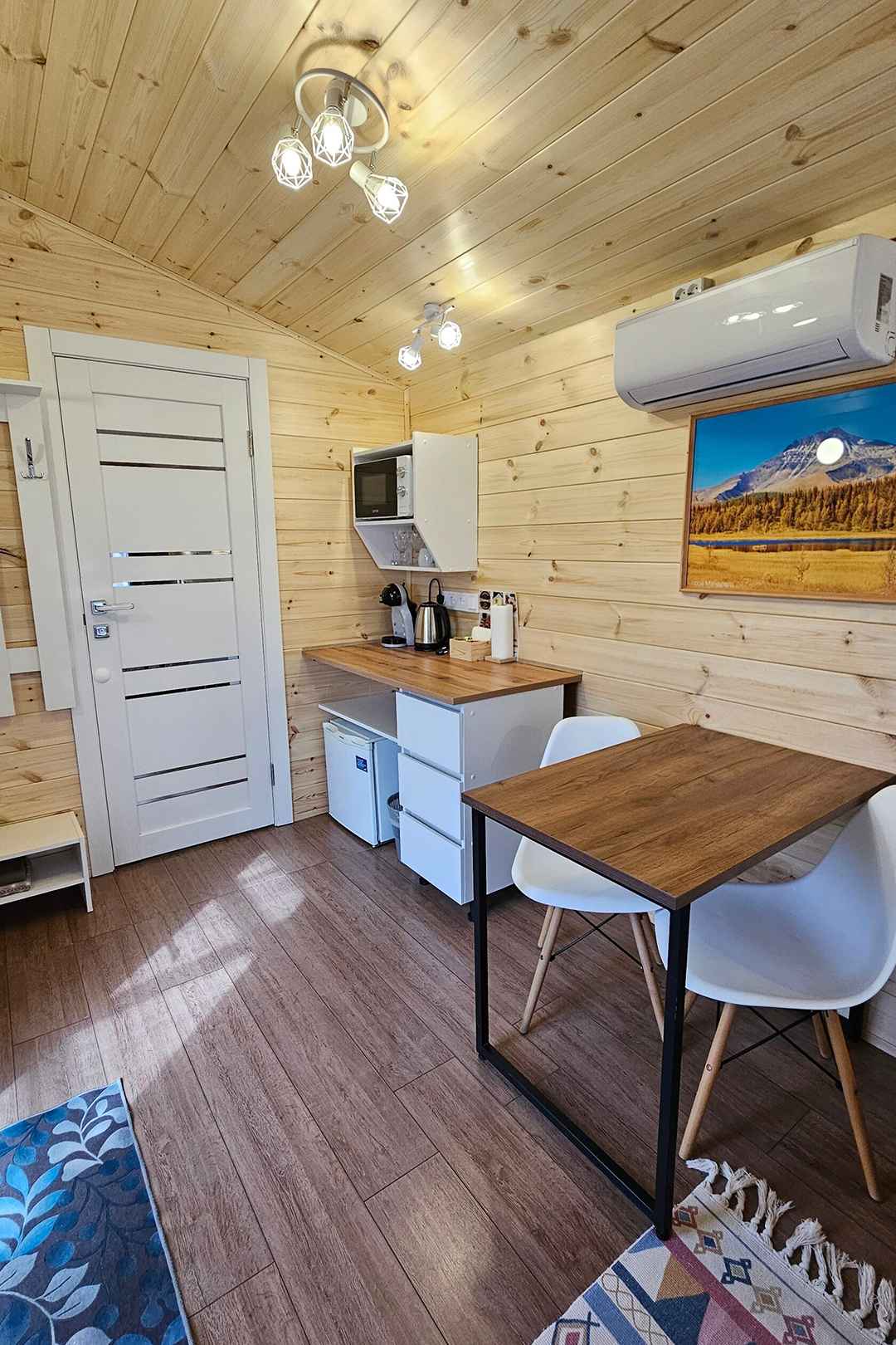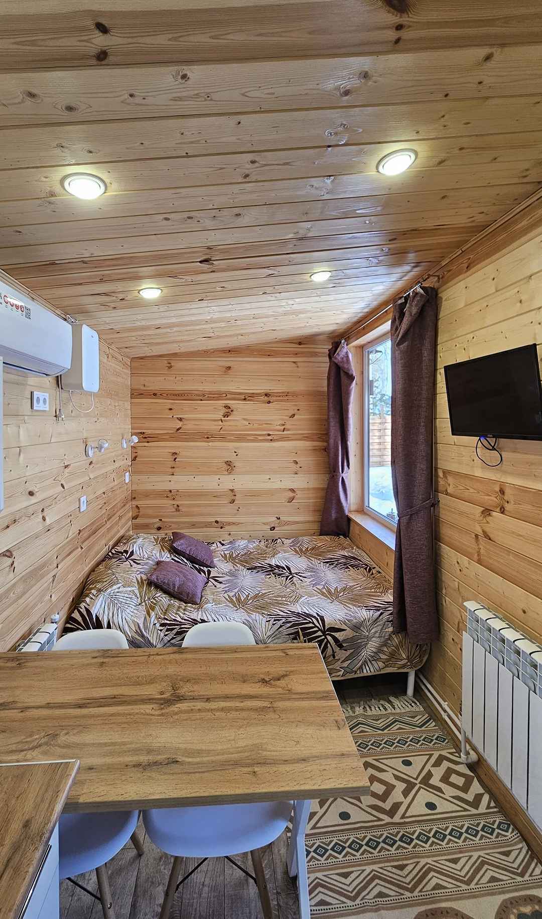 Гардероб Диван Кондиционер Мини-кухня Обогреватель Санузел Стол Стулья Телевизор Теплый пол Панорамные окна Гель для душа Душ Мыло Набор полотенец Умывальник Шампунь Детская кроватка по запросу Возможно размещение с животными при предварительном согласовании Wi-Fi Кофемашина Микроволновая печь Плита Посуда Чайник Холодильник Парковка Доставка еды Бассейн Гамак Качеля Мангал Терраса Шезлонг Баня (сауна) Банный чан Завтрак