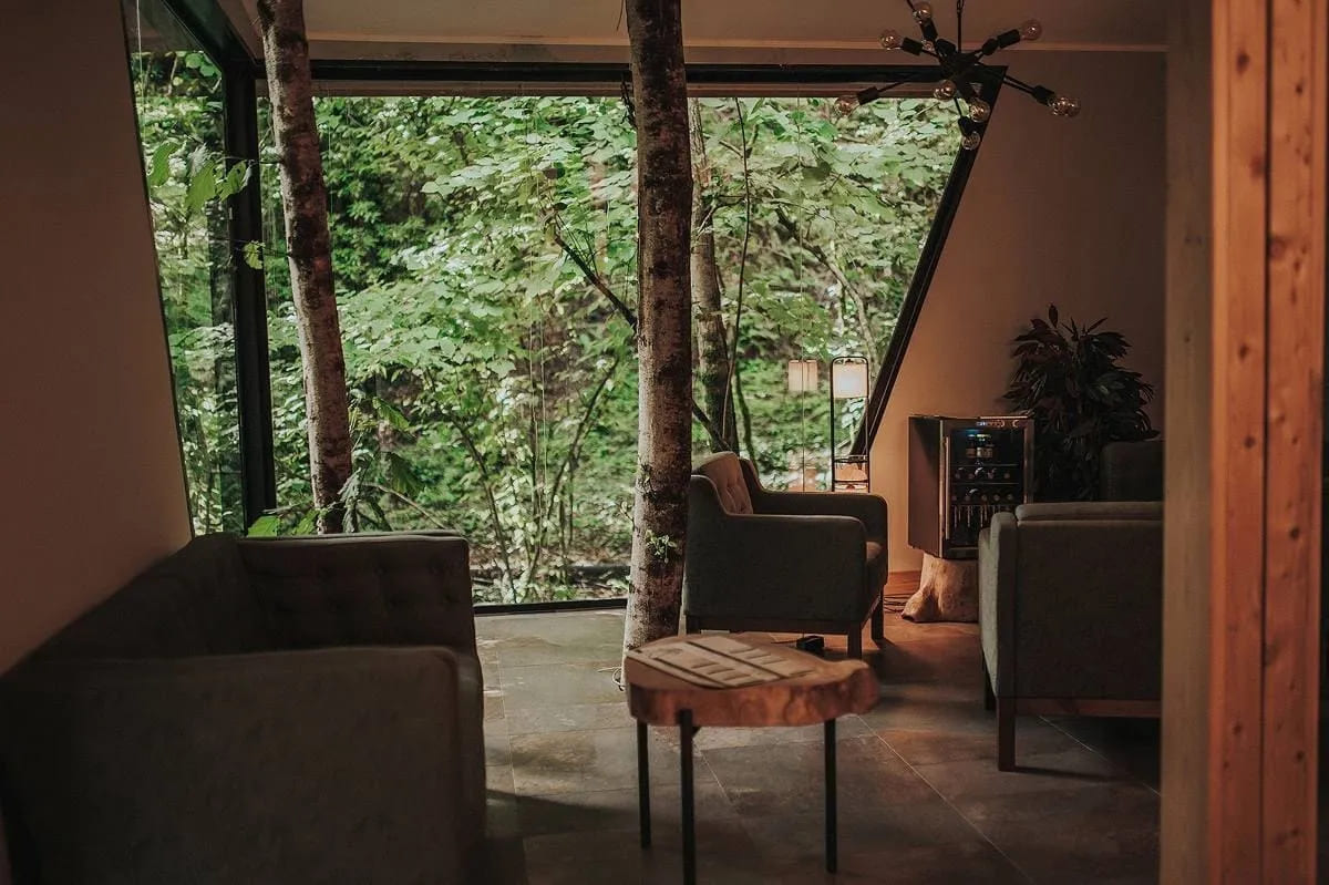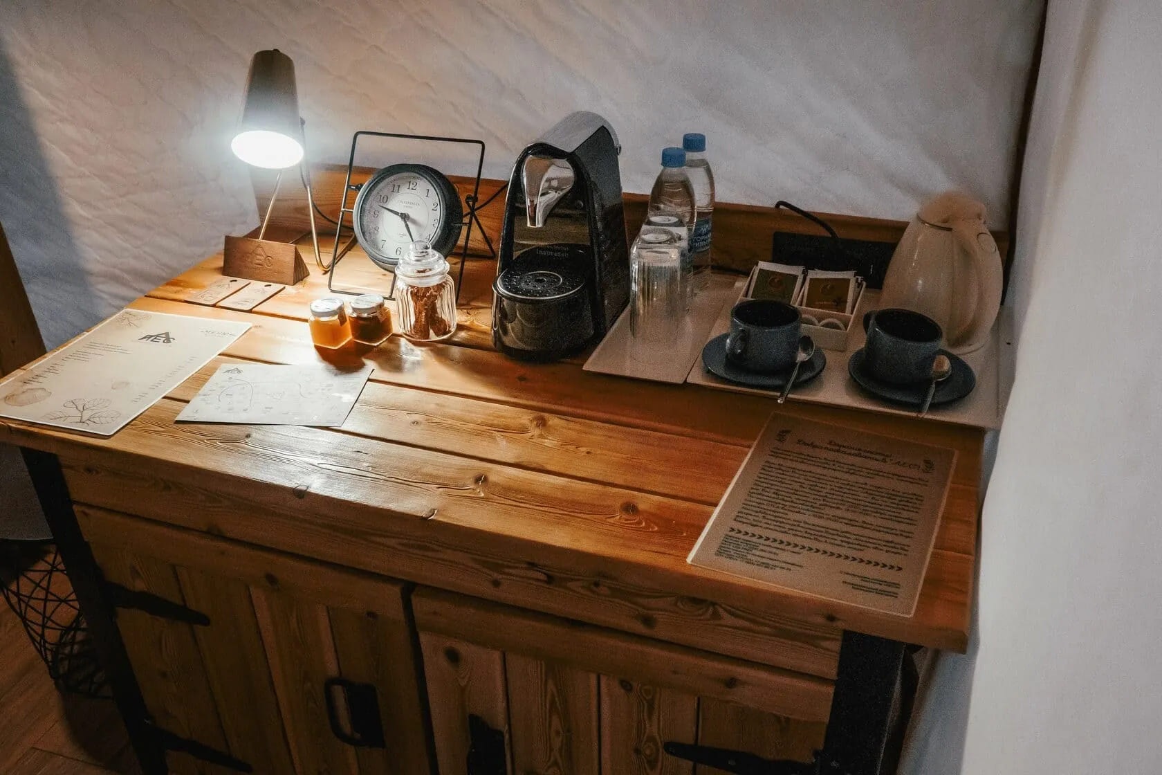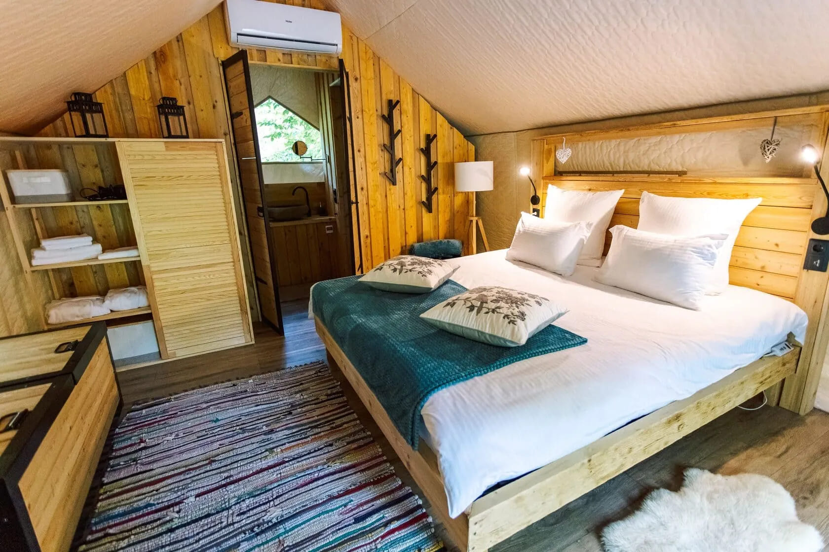 Находится глэмпинг и спа Лес на территории Сочинского Национального парка, в трёх километрах от села Чвижепсе. Всего 30 минут от Адлера и Красной поляны и вы окажетесь в другой реальности. В реальности, где наслаждаться природой можно в любое время года. В шатрах тёплые полы, кондиционеры, подогреваемые простыни и камин — как приправа к уютной атмосфере.