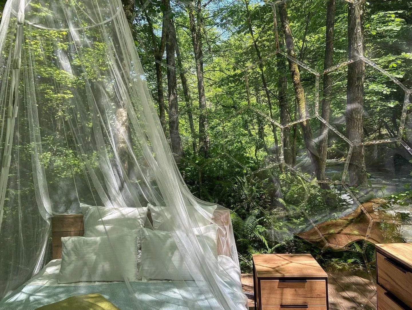 Глэмпинг Лес — уникальное место для ценителей уединенного отдыха и премиального комфорта. На побережье горной реки Чвижепсе, в реликтовом лесу, расположились 24 комфортабельных тент-хауса и прозрачная сфера. В каждом номере глэмпинга Лес в Сочи – мебель из натуральных материалов и все блага цивилизации. Восстановите гармонию души и тела в банном и СПА-комплексе, а после посетите ресторан авторской кухни ZAYKA, где каждая подача — произведение искусства.