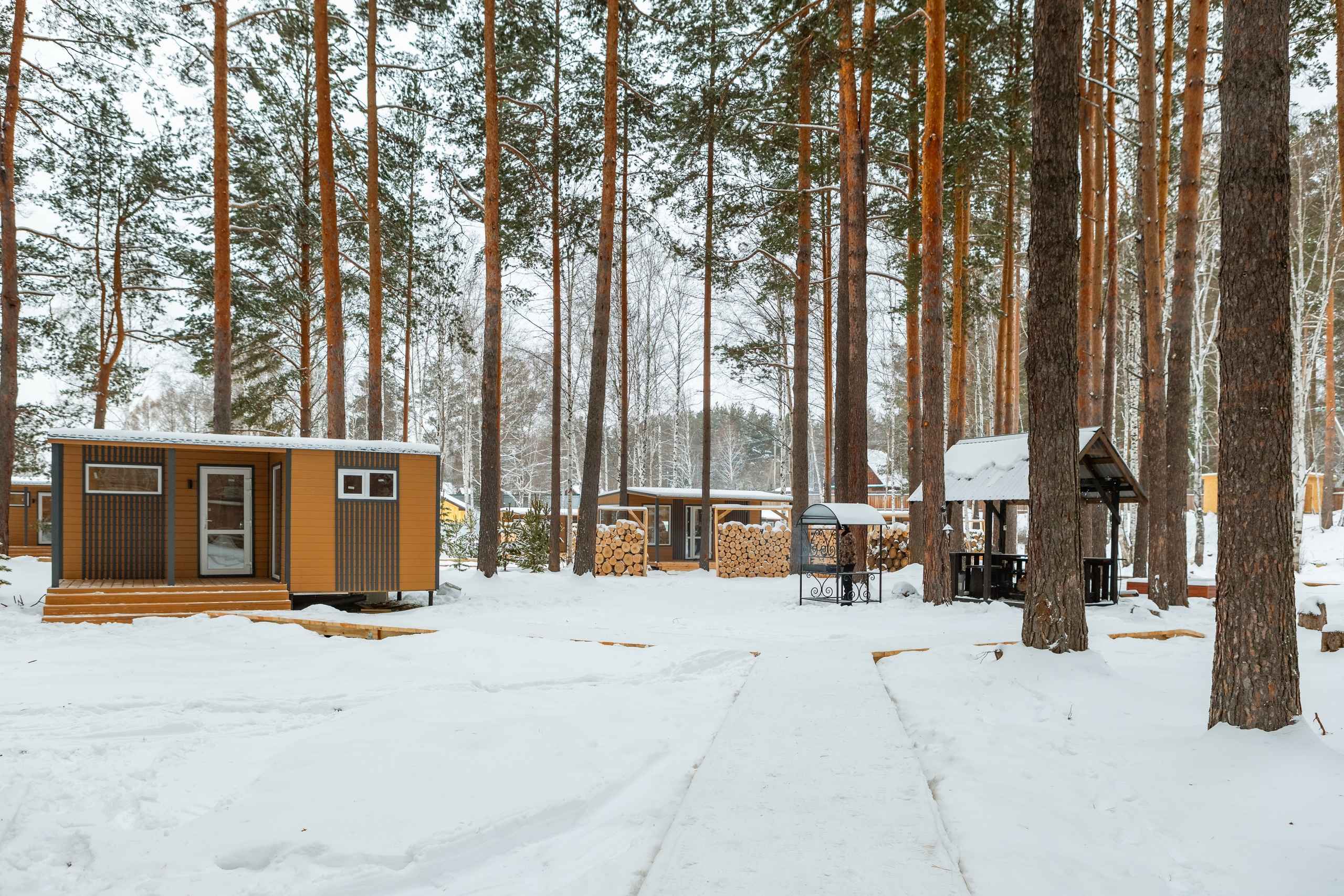 Тип глэмпинга:Дом в лесу, Модульный дом