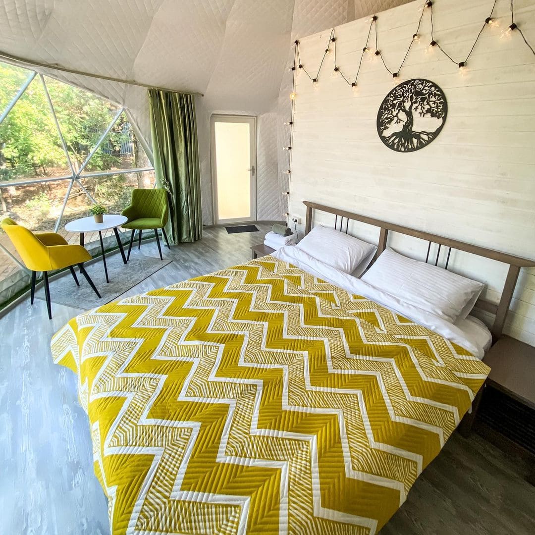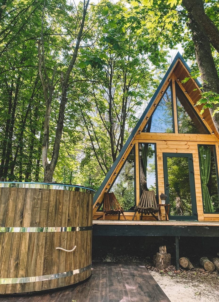 Тип глэмпинга:А-фрейм, Барнхаус, Дом в лесу, Купол, Юрта