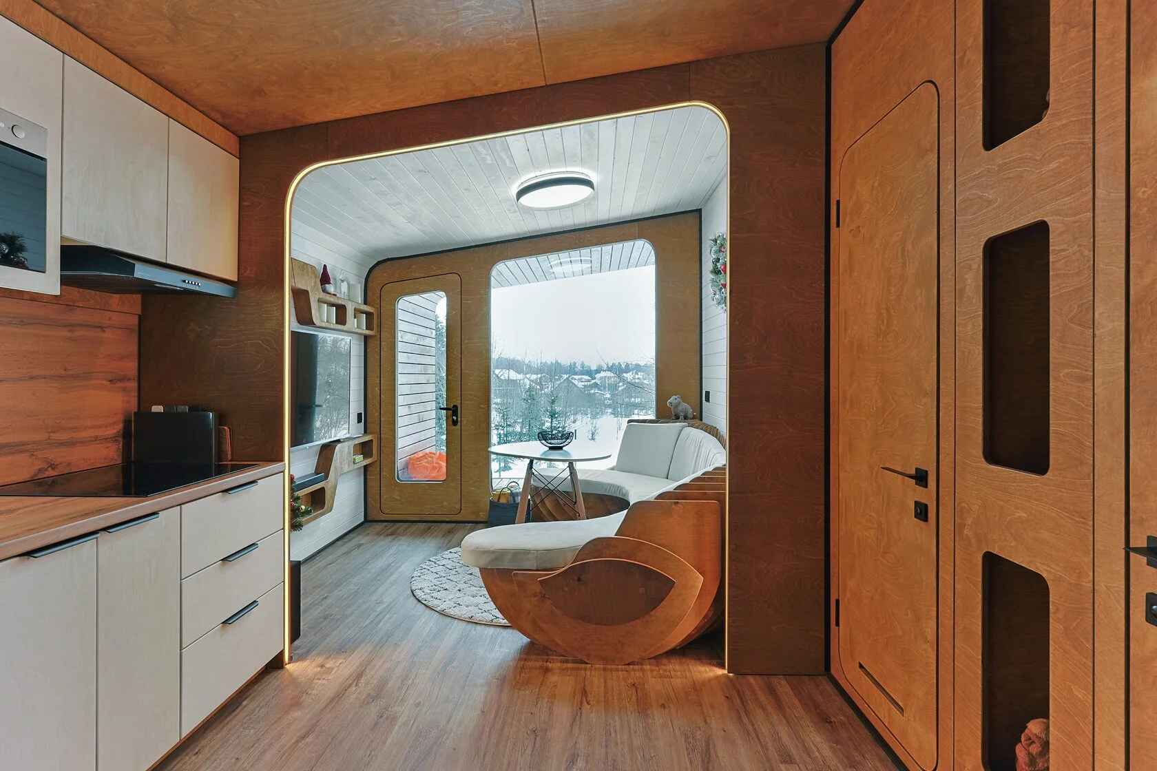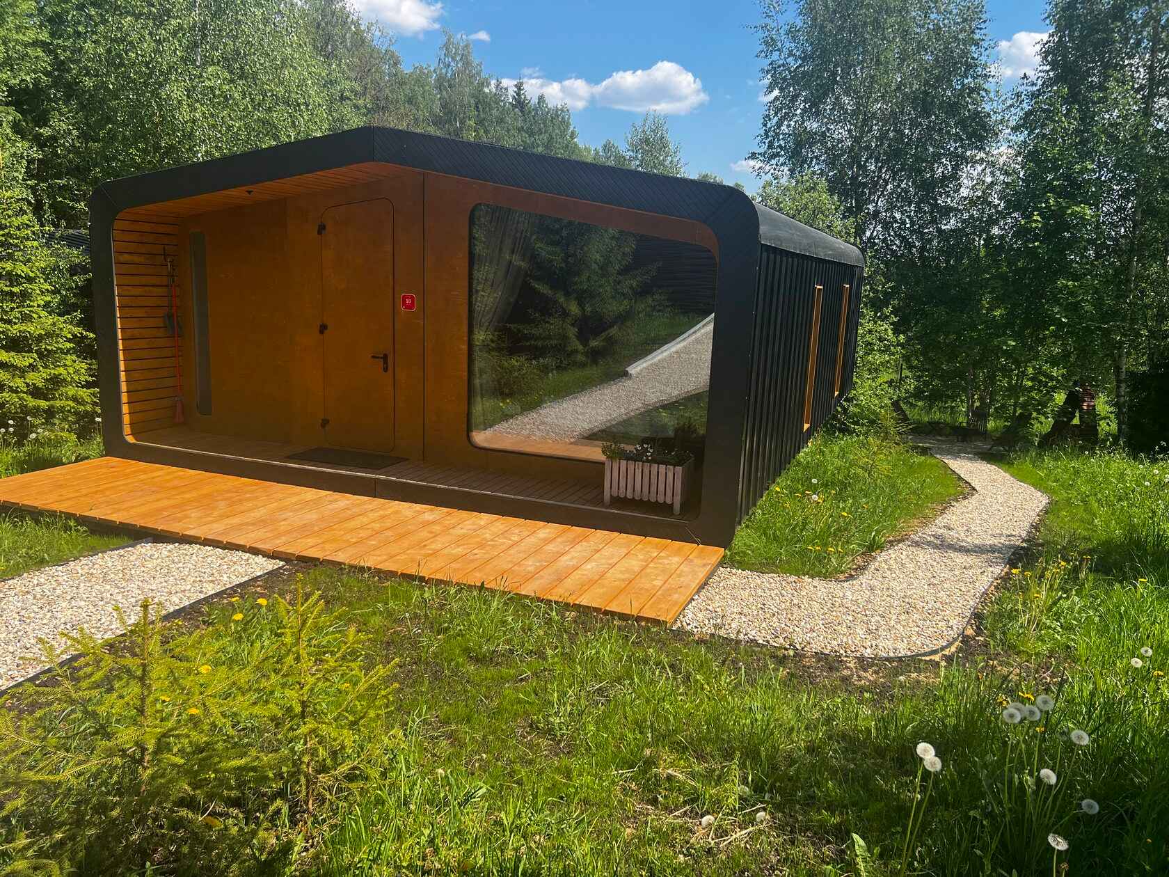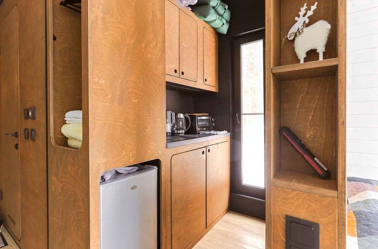 Тип глэмпинга:Барнхаус, Дом в лесу, Модульный дом