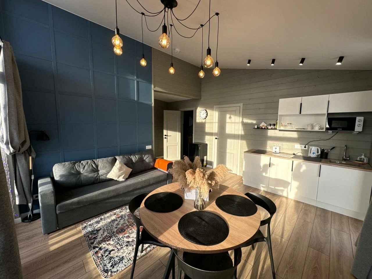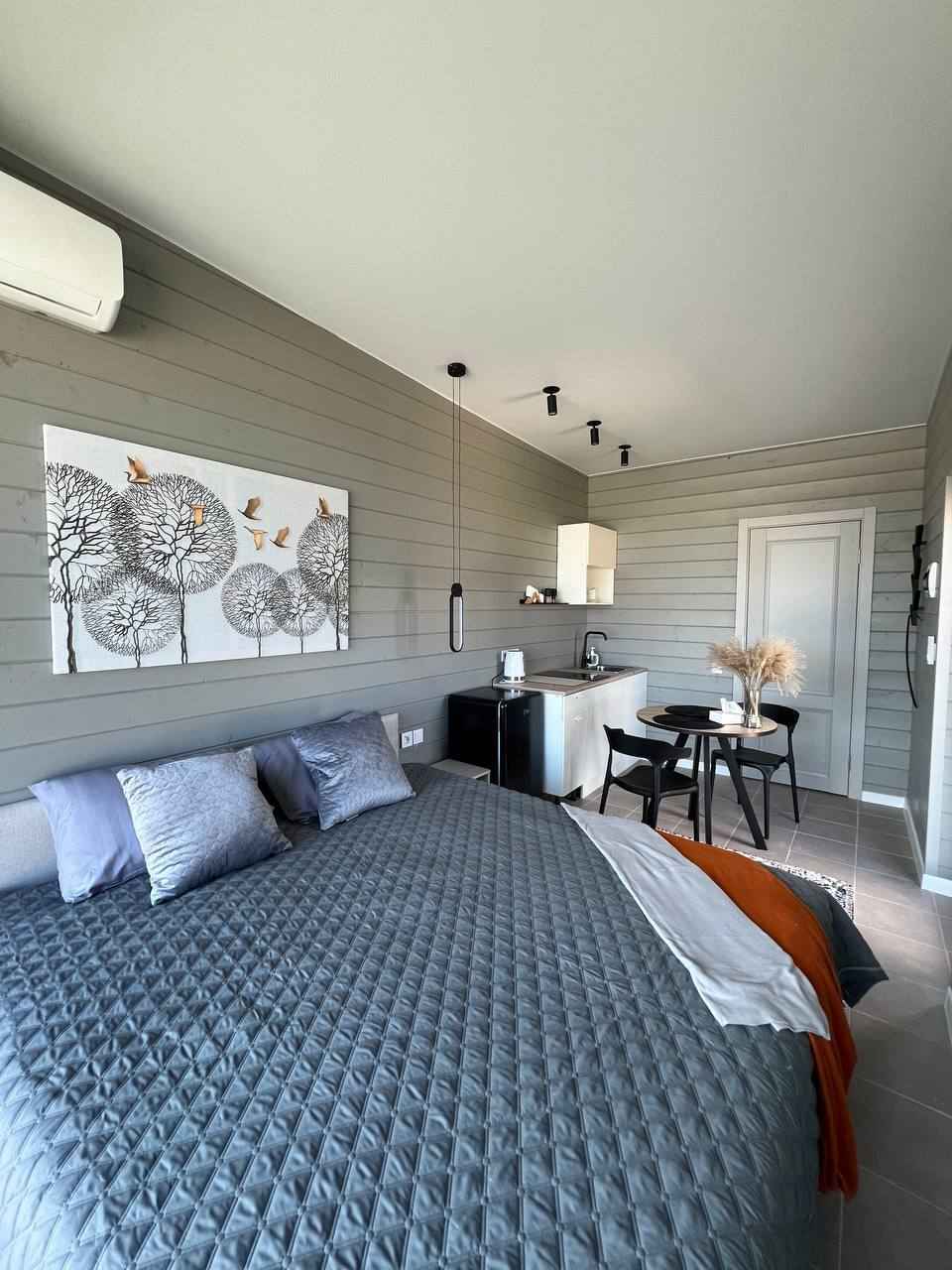 Гардероб Диван Кондиционер Мини-кухня Обогреватель Санузел Стол Стулья Телевизор Гель для душа Душ Мыло Набор полотенец Умывальник Фен Шампунь Возможно размещение с животными при предварительном согласовании Wi-Fi Микроволновая печь Плита Посуда Тостер Чайник Холодильник Парковка Доставка еды Тумба Гамак Игровая зона Качеля Мангал Терраса Ферма Шезлонг Костровая зона Баня (сауна) Банный чан