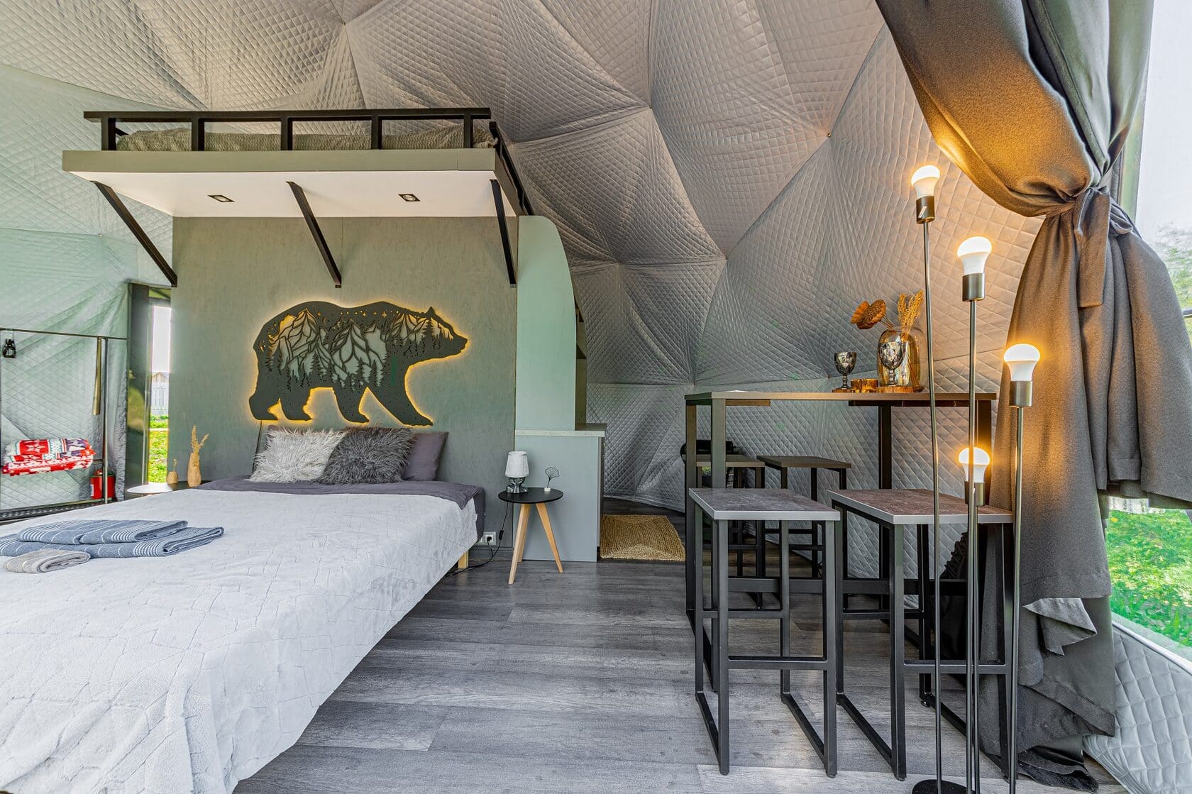 Тип глэмпинга:Дом в лесу, Купол, Модульный дом, Эко-дом