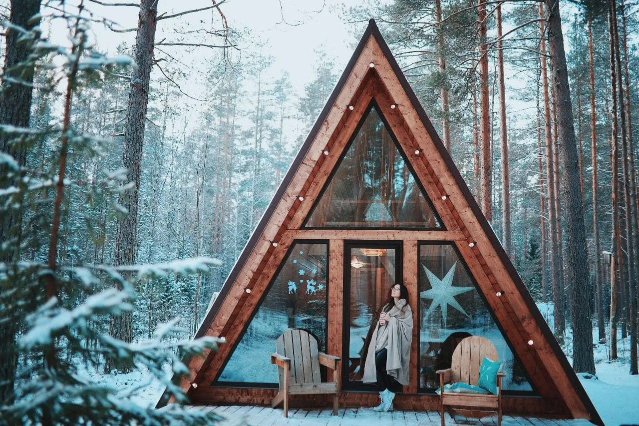 Тип глэмпинга:А-фрейм, Белл-тент, Дом в лесу