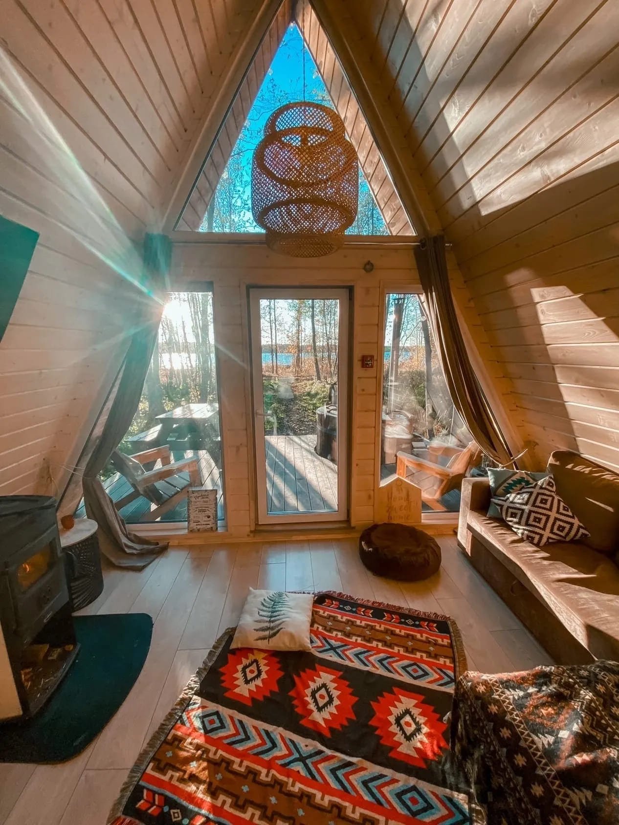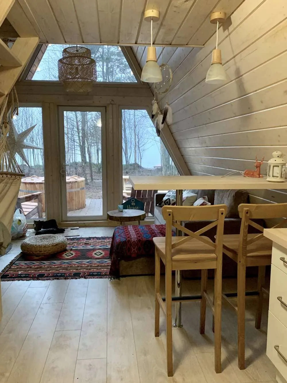 Всего Shanti Home в Спб насчитывает 16 домиков в Лосево и 12 домиков в Громово, а также 7 шатров. Хозяева позаботились, чтобы у вас было всё для комфортного проживания: двуспальная кровать, туалет и душ с горячей водой. А в домиках ещё и диван и полностью оборудованная кухня.