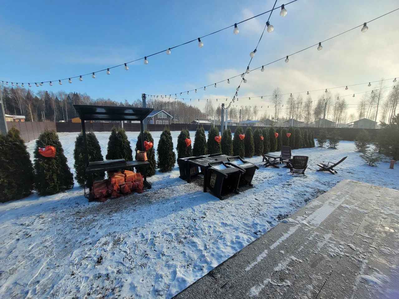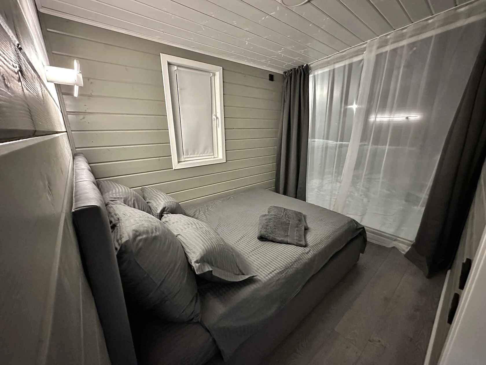 Сканди Лайф – это домик для отдыха в Дмитровском округе Московской области, который размещен на закрытой территории коттеджного поселка Андрейково Лайф в 50 километрах от Москвы. Участок озеленен сибирским кедром, кремлёвской ёлкой глаука и голубыми елями, чтобы создать ощущение хвойного леса. Для проживания в глэмпинге Сканди Лайф доступен уютный домик с панорамными окнами и продуманной планировкой, где на кухне установлена индукционная плита, холодильник с морозильной камерой и собран весь комплект посуды. В спальне размещен кондиционер и удобный матрас, а в гостиной подключен телевизор с Яндекс ТВ, голосовая станция Алиса и PlayStation 4 с играми. Есть даже бильярдный стол. Во дворе хозяева обустроили мангальную и костровую зоны с ретро-гирляндами, поставили лежаки с матрасами и стол для завтраков на свежем воздухе, а главная изюминка территории — премиальная купель Фурако из композитных материалов, которая выбрана вместо чана, потому что в ней вода остается чистой без запаха металла или гниющего дерева. К каждому сеансу парения предлагаются мягкие ветки пихты, запарки лаванды или эвкалипта и дольки цитрусовых.