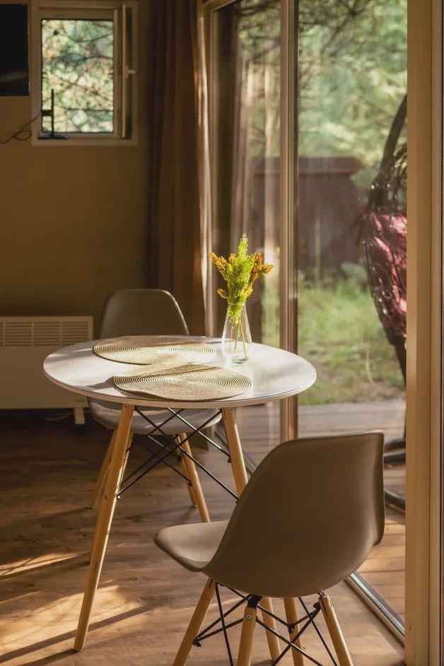 Skazka в лесу – это уединенный глэмпинг, расположенный в живописном сосновом бору деревни Василево Киржачского района Владимирской области, всего в 1,5 часах езды от Москвы. Территория глэмпинга находится среди могучие сосен, с которых доносится пение птиц и манящий хвойный аромат. Для проживания в глэмпинге Skazka в лесу доступны три круглогодичных модульных домика с панорамными окнами в пол, которые рассчитаны на размещение двух взрослых и одного ребенка (дополнительное место предоставляется по запросу). На террасе установлено кресло-качель, а рядом располагается барбекю-зона с шампурами и решеткой. При желании, вечером вы можете собраться на общем костровом месте и завести новые знакомства. Летом здесь можно взять в аренду велосипеды, SUP-борды, лодку и удочки для рыбалки на ближайшем пруду (15 минут ходьбы), а зимой – покататься на лыжах или тюбингах по заснеженному лесу.