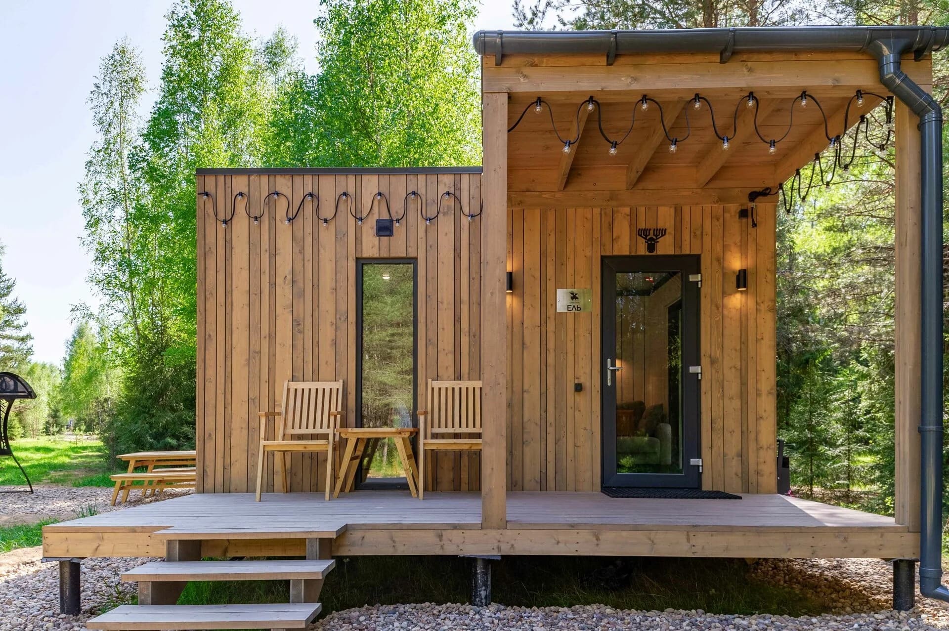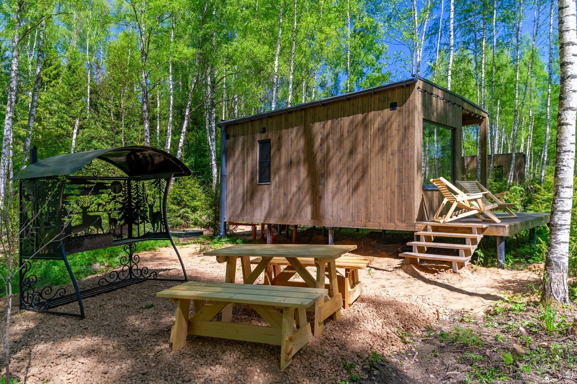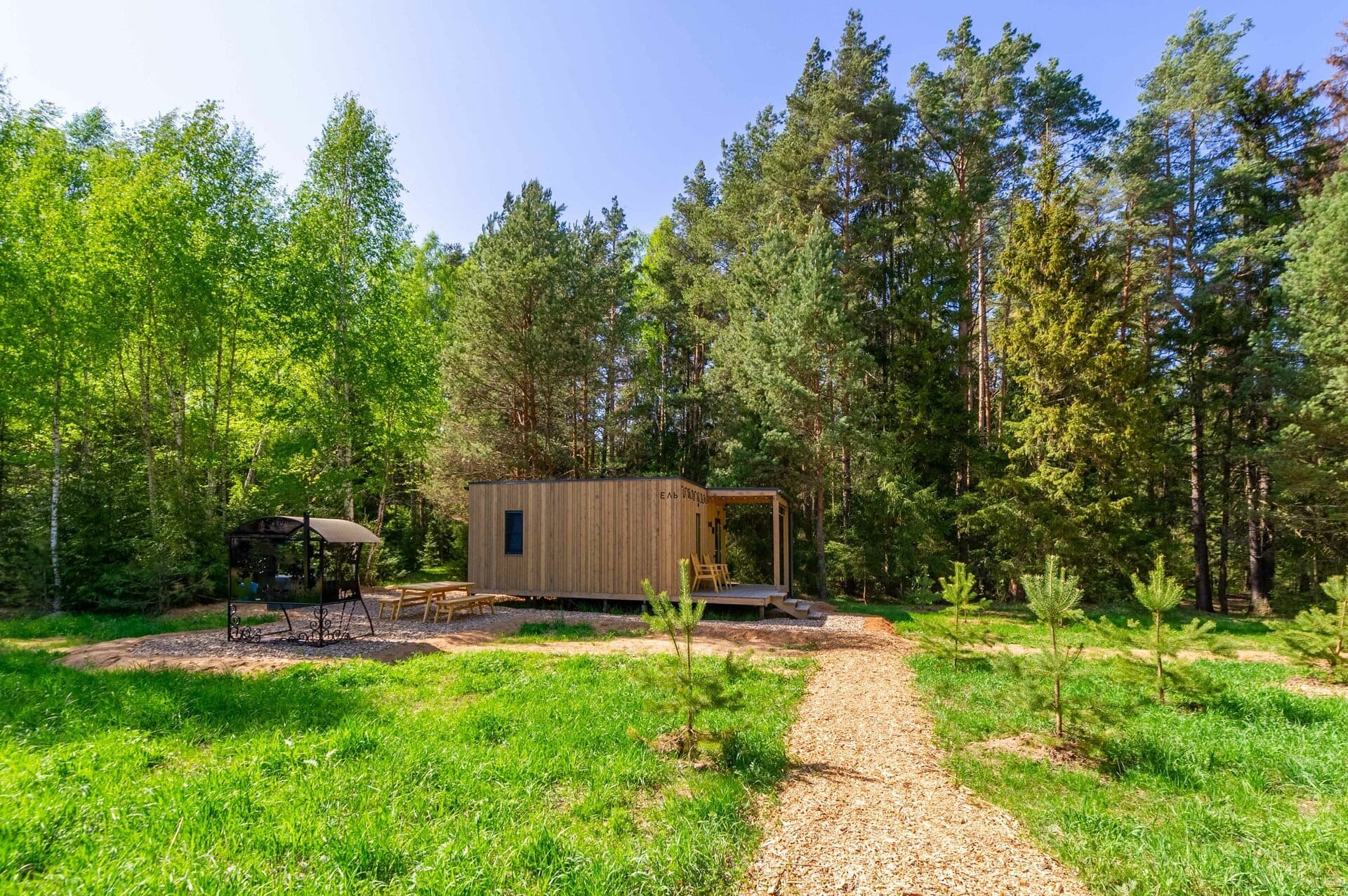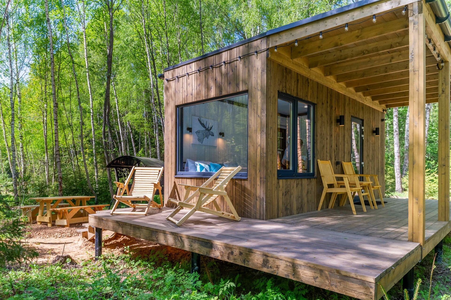 Тип глэмпинга:Дом в лесу, Модульный дом