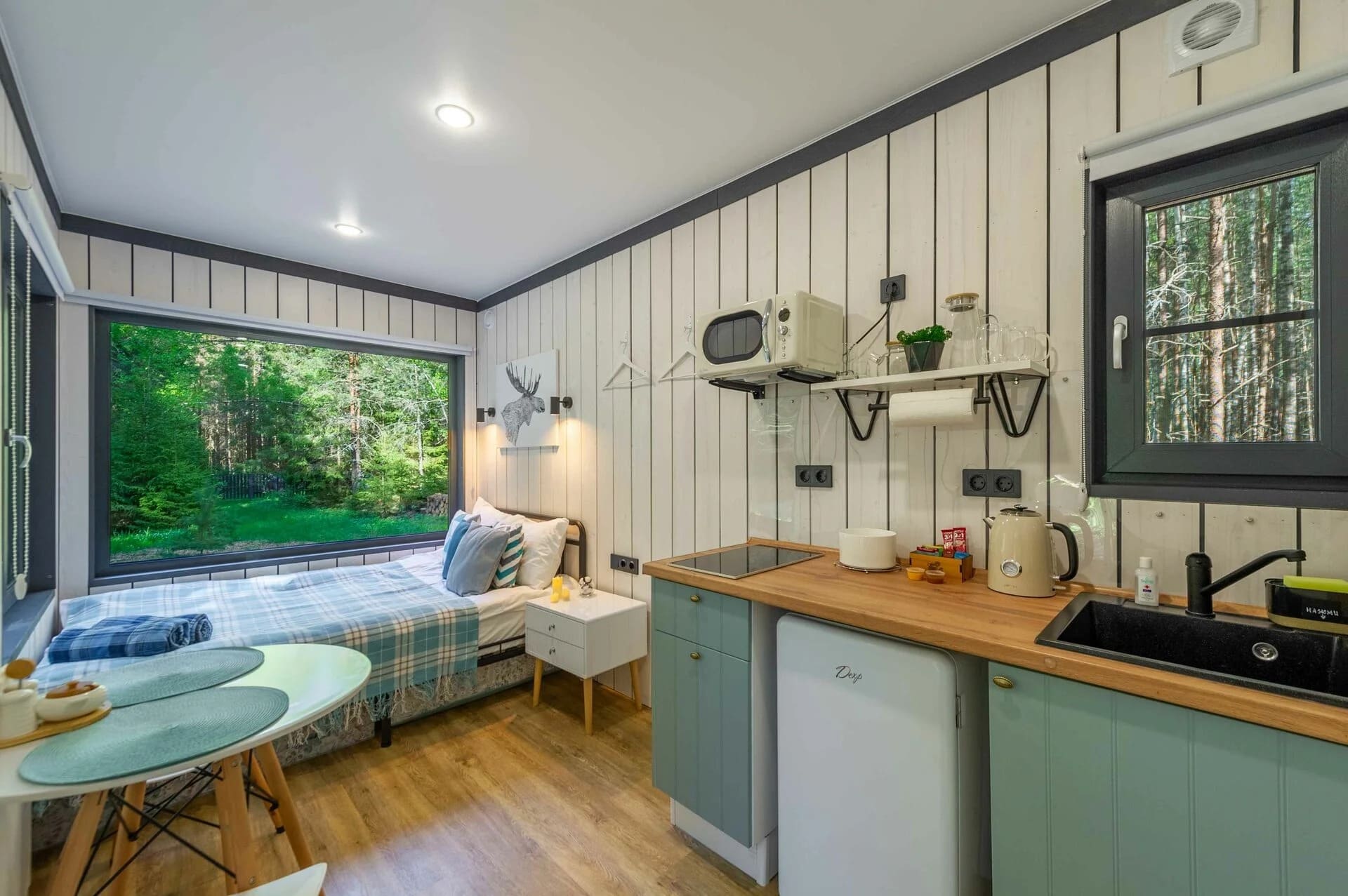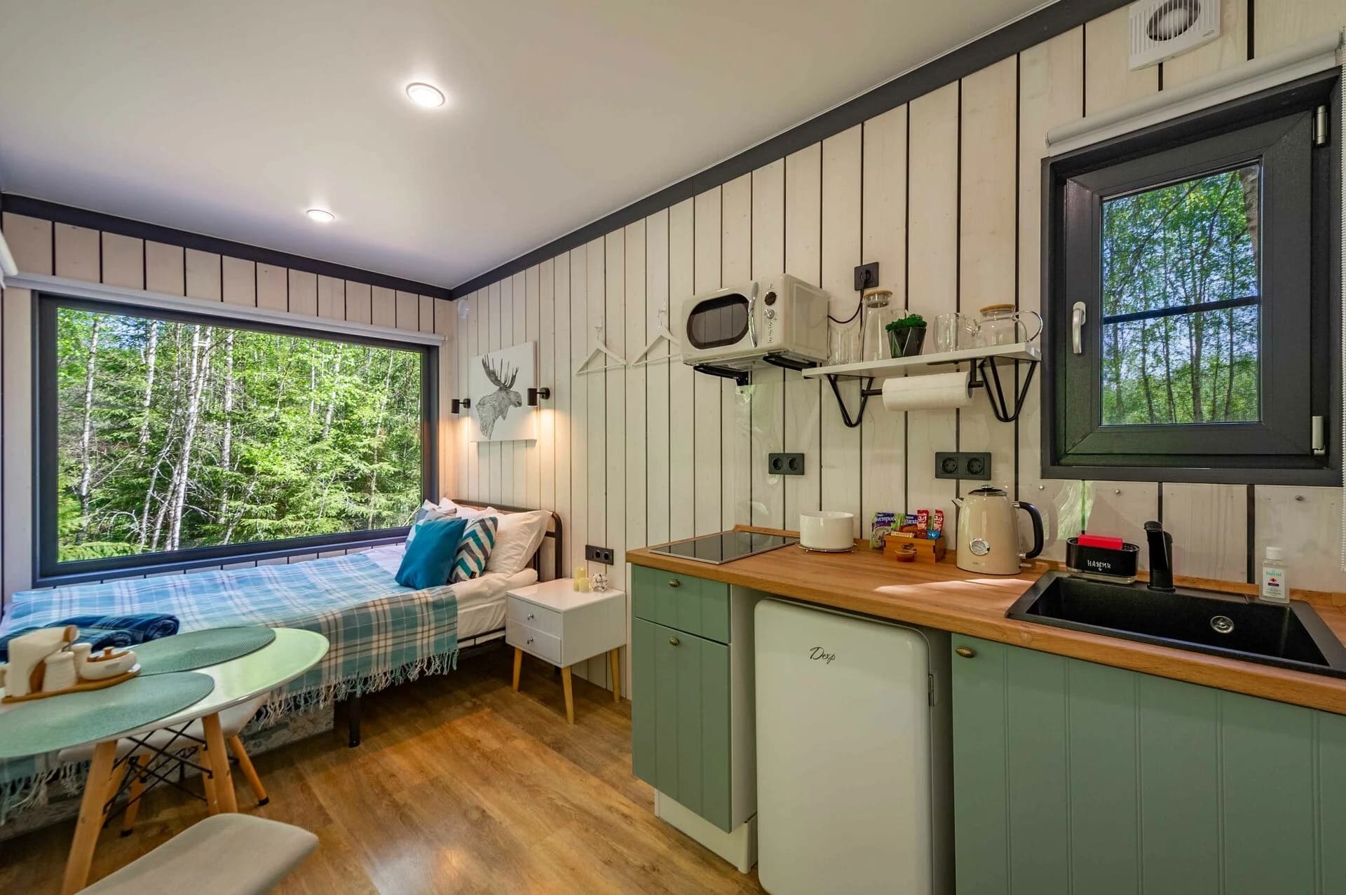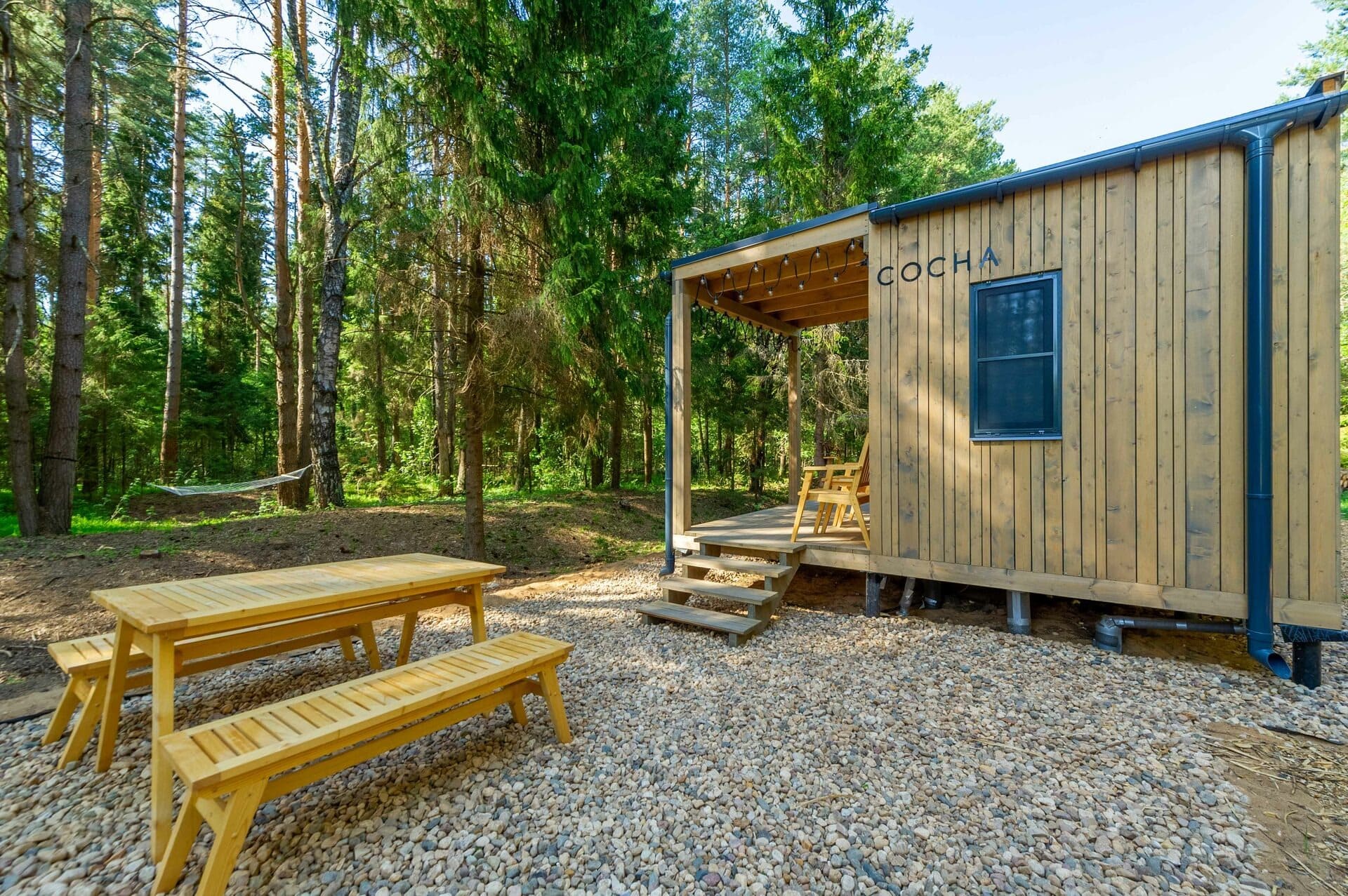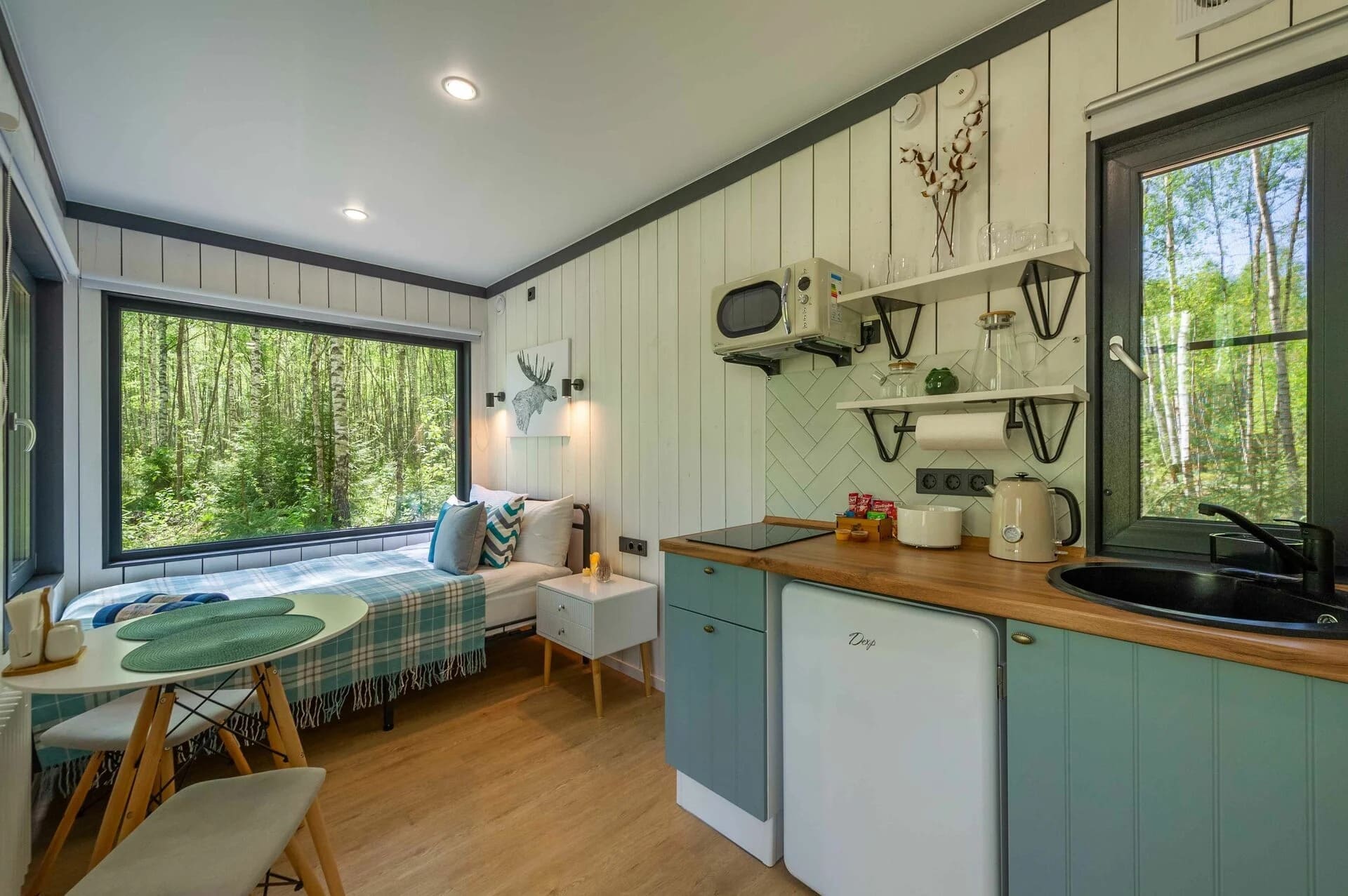 Тип глэмпинга:Дом в лесу, Модульный дом