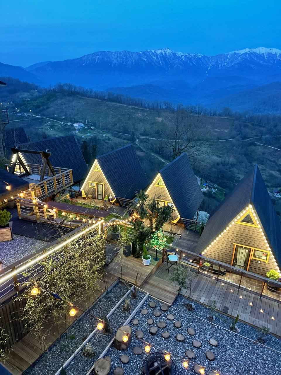 Светогорье – это уютный глэмпинг в формате треугольных домиков, расположенный в поселке Нижняя Шиловка в Краснодарском крае. Живописное место находится в Сочи недалеко от Адлера и позволяет гостям наслаждаться шикарным видом на могущественные горы и густые леса прямо с балкона номера. Для проживания в глэмпинге Светогорье доступно 5 стильных двухэтажных а-фреймов, наполнение которых позволяет окунуться в отдых на природе с полным комфортом. Внутри расположена гостиная с раскладным диваном, кондиционером и телевизором, а на втором этаже установлена удобная двуспальная кровать. Из развлечений доступен полный спектр SPA-программ: парение в русской баньке, подогреваемой купели фурако на свежем воздухе и расслабляющий массаж. Также на территории находится пространство для ретритов.