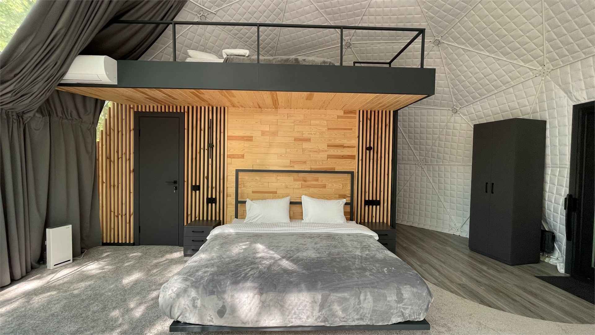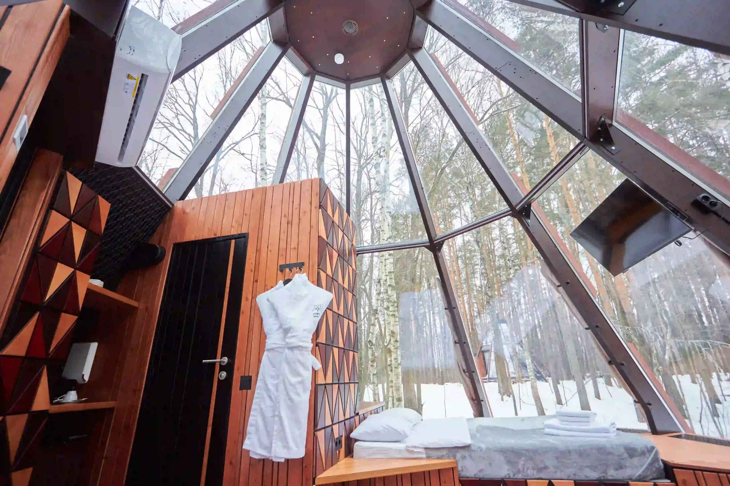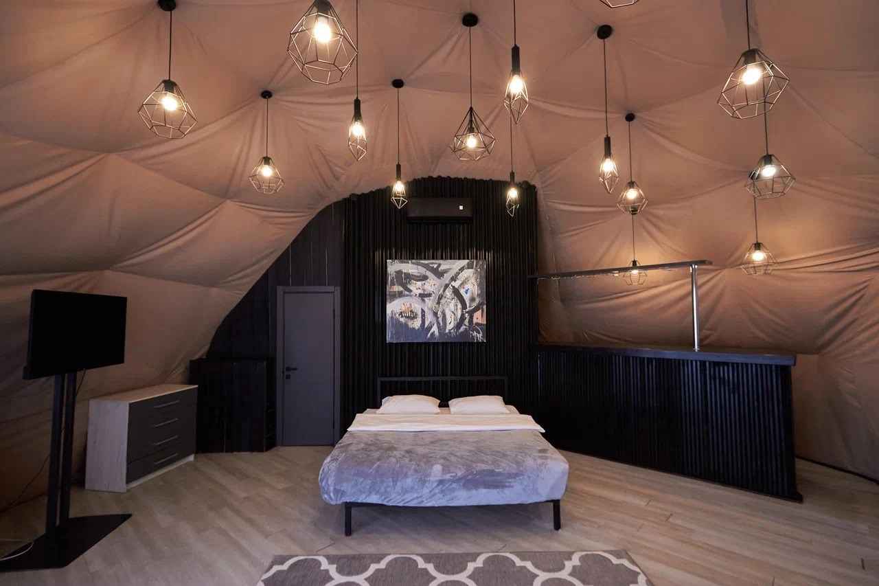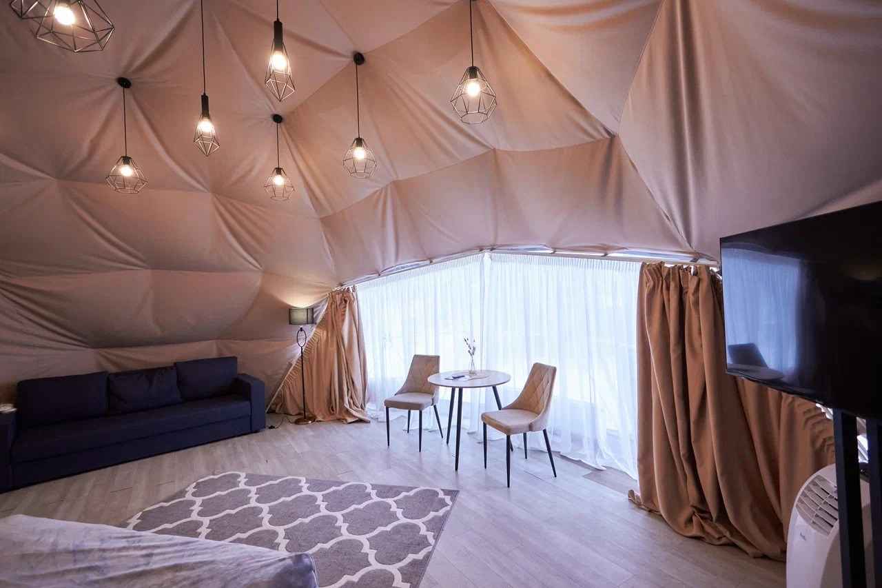 Тип глэмпинга:А-фрейм, Дом в лесу, Дом на воде, Дом на дереве, Зеркальный дом, Купол, Модульный дом, Типи