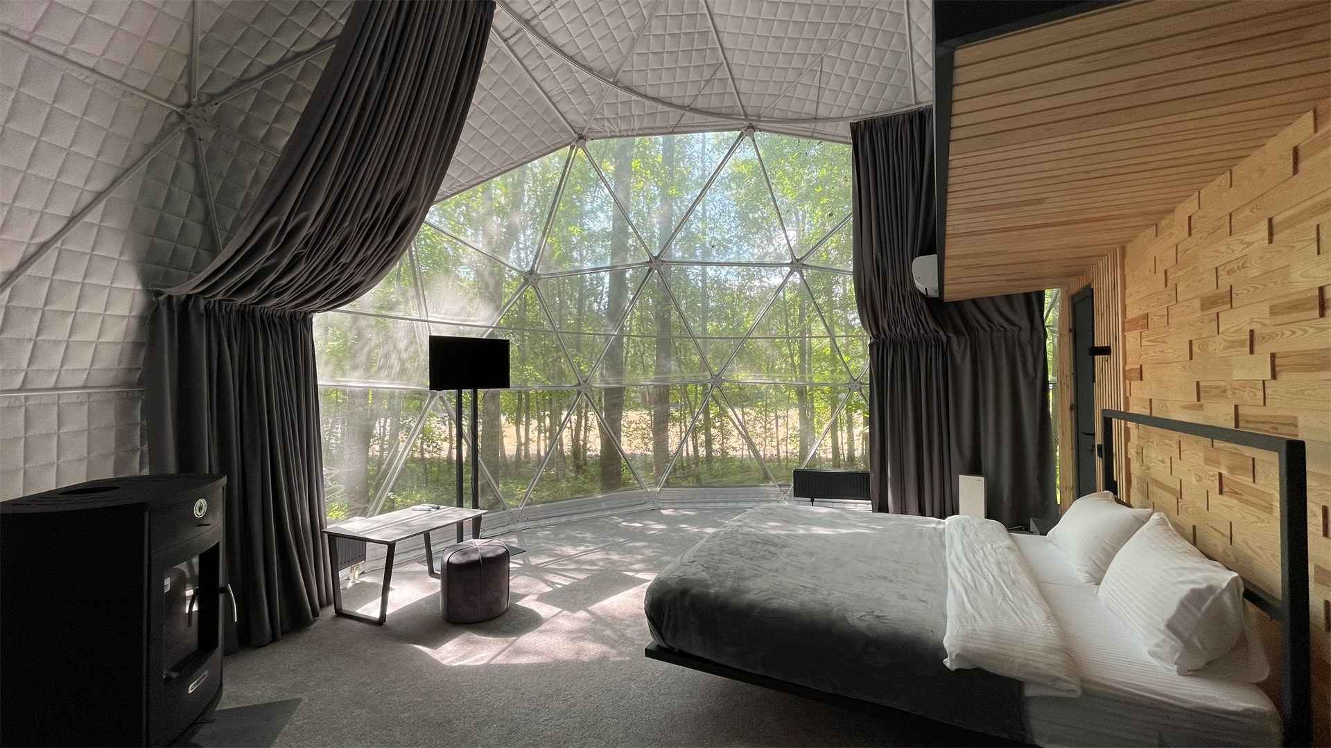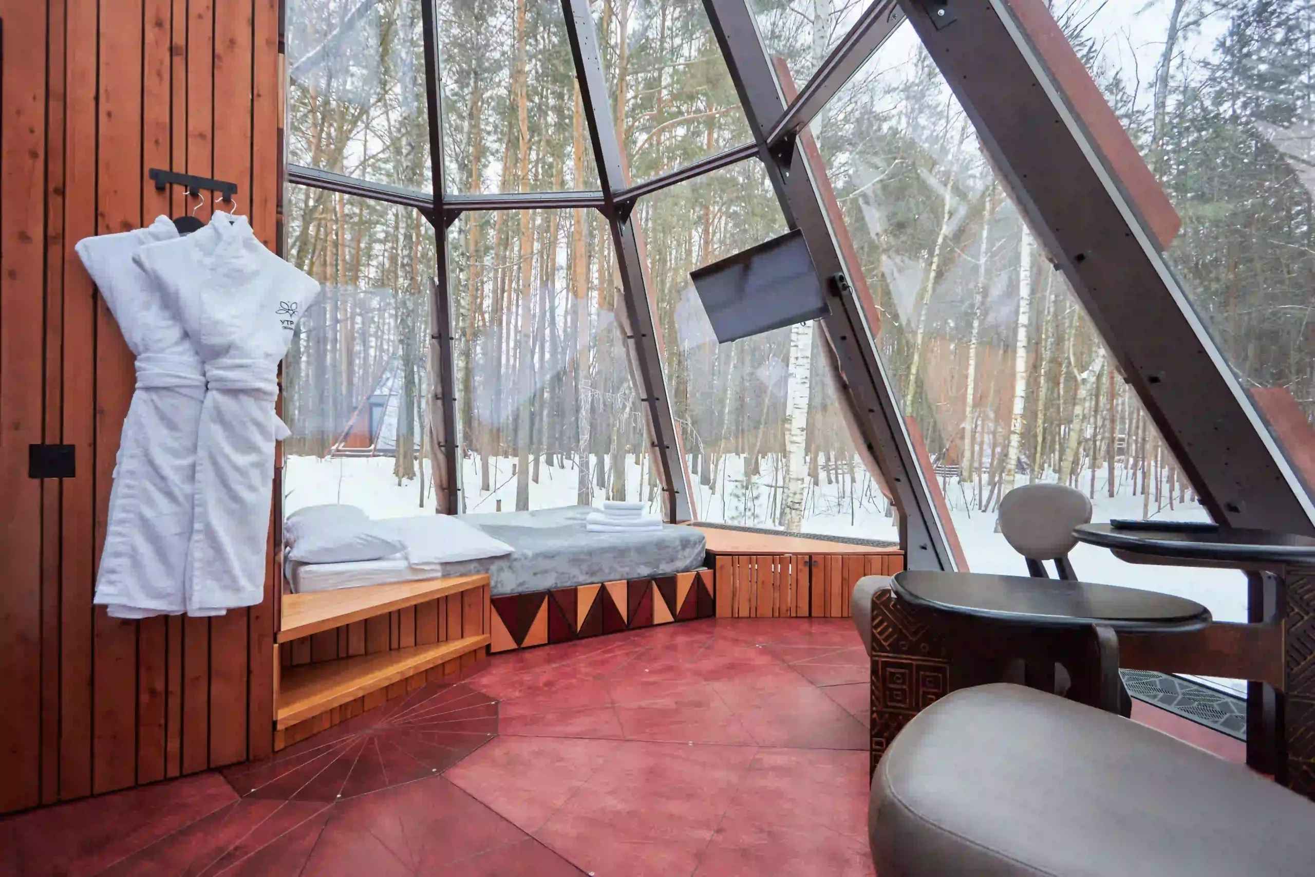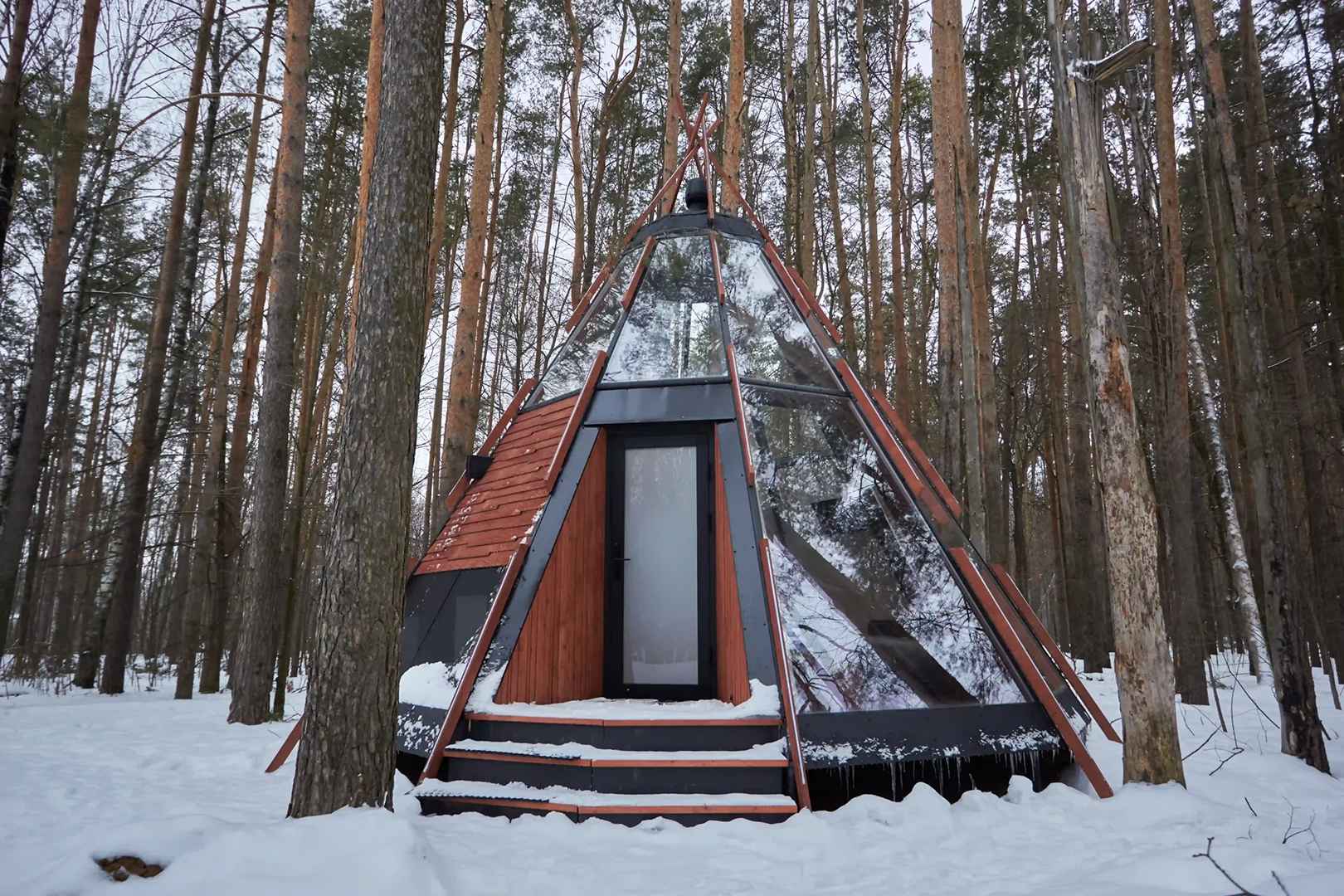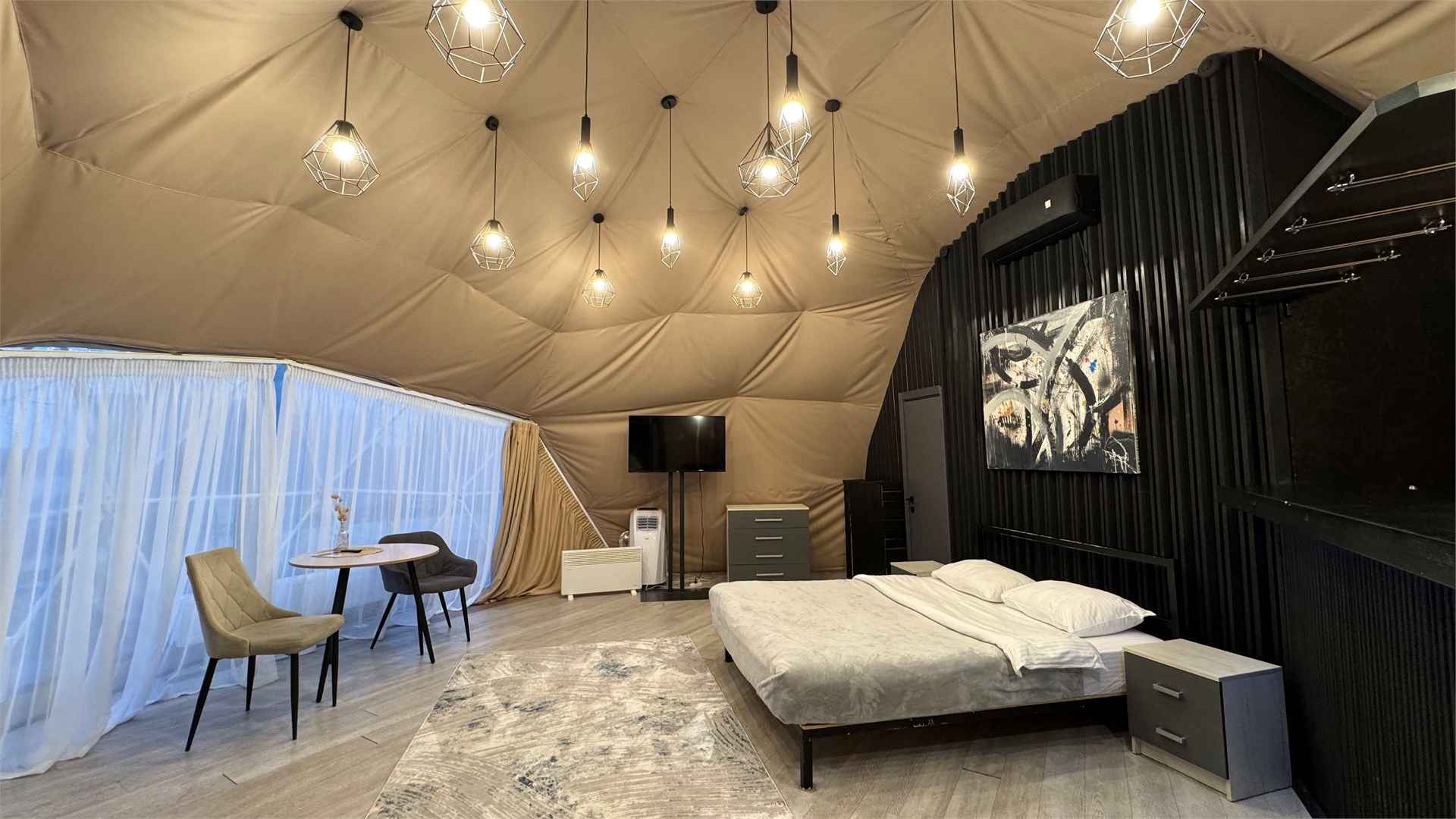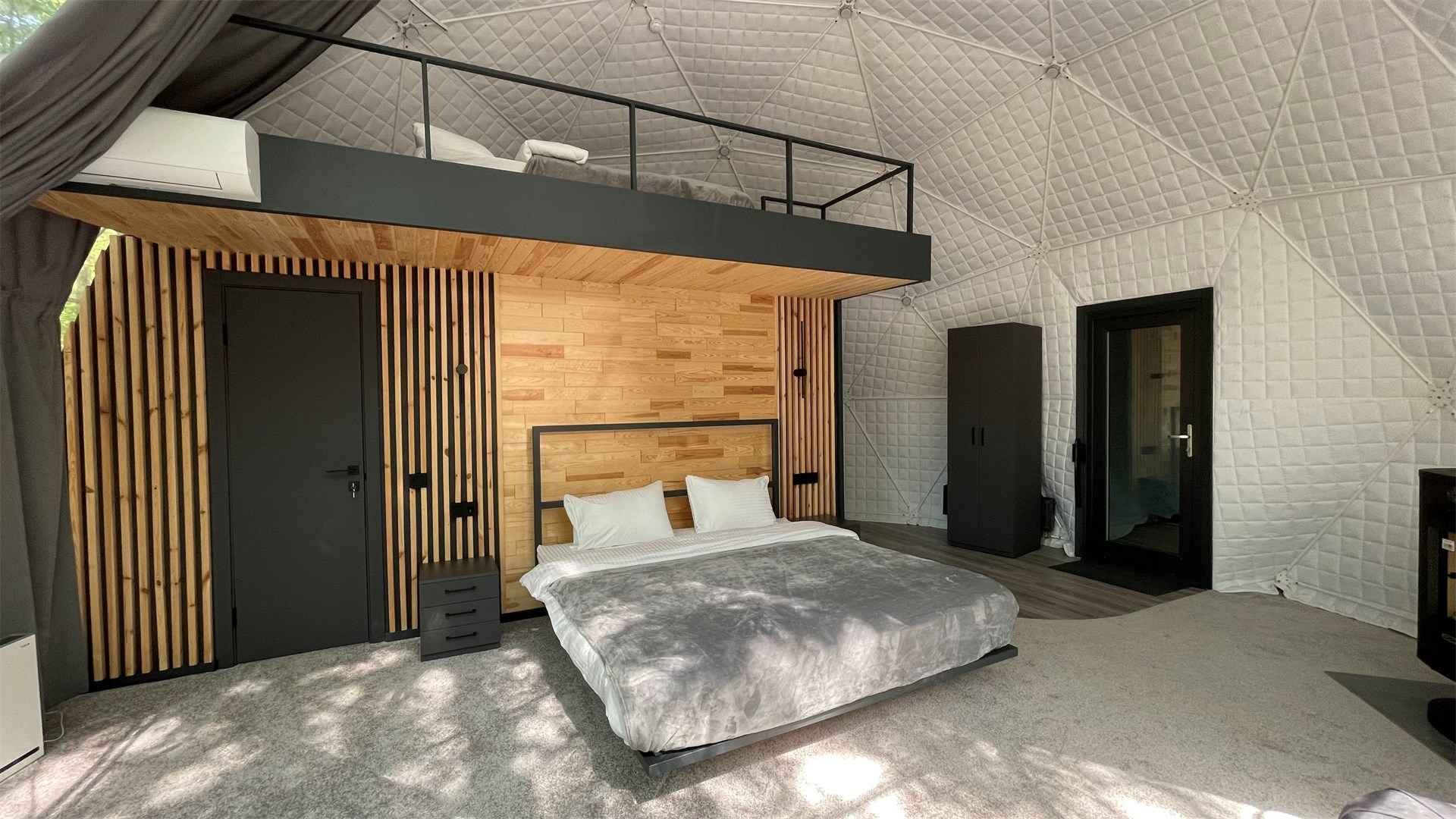 Тип глэмпинга:А-фрейм, Дом в лесу, Дом на воде, Дом на дереве, Зеркальный дом, Купол, Модульный дом, Типи