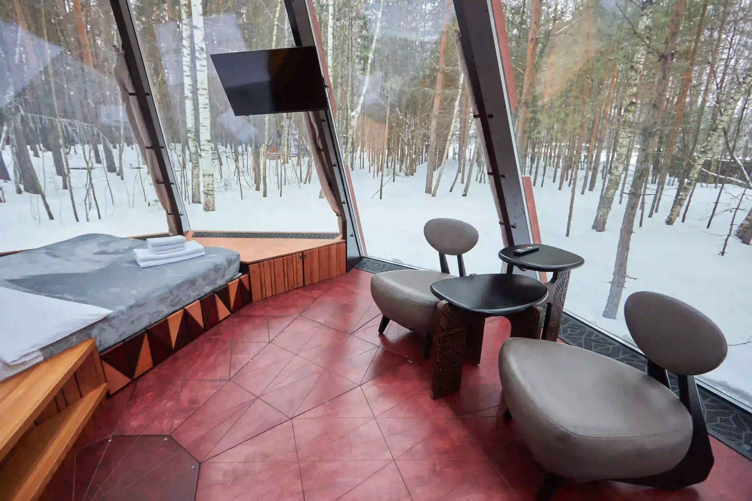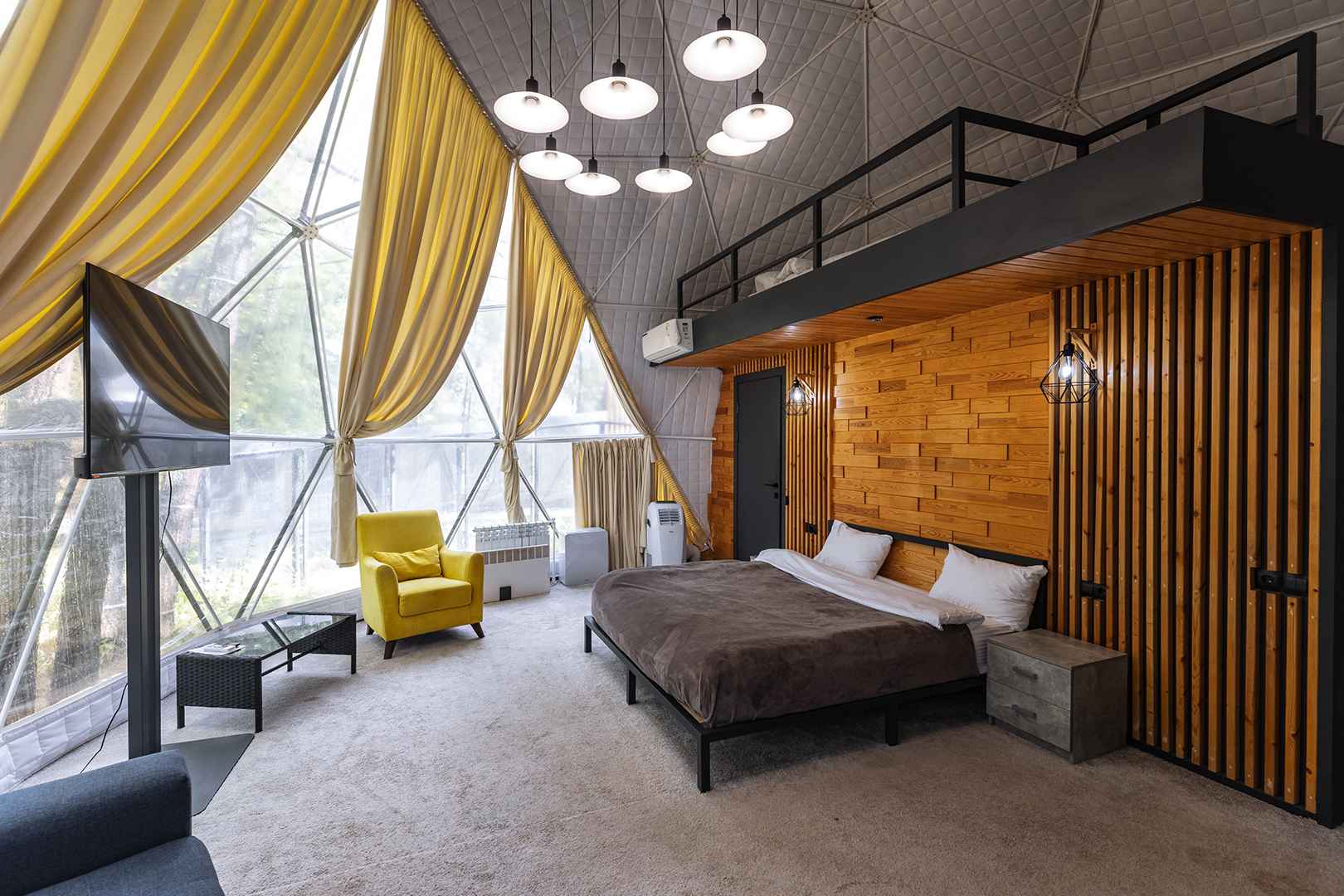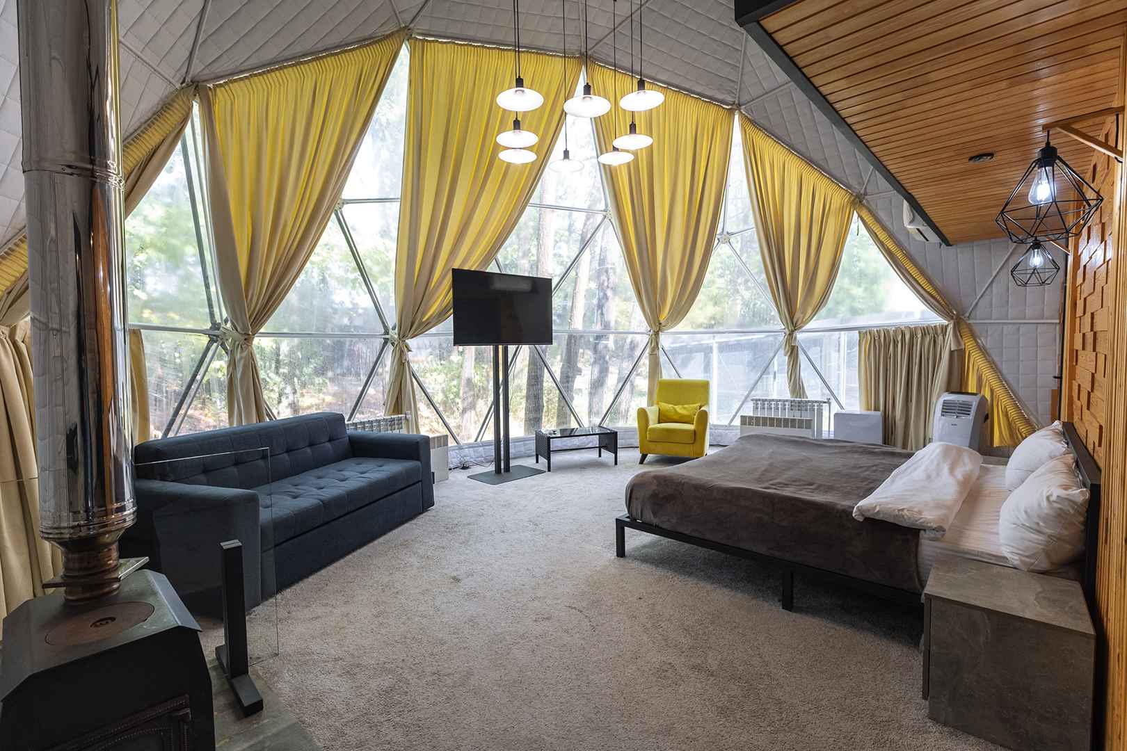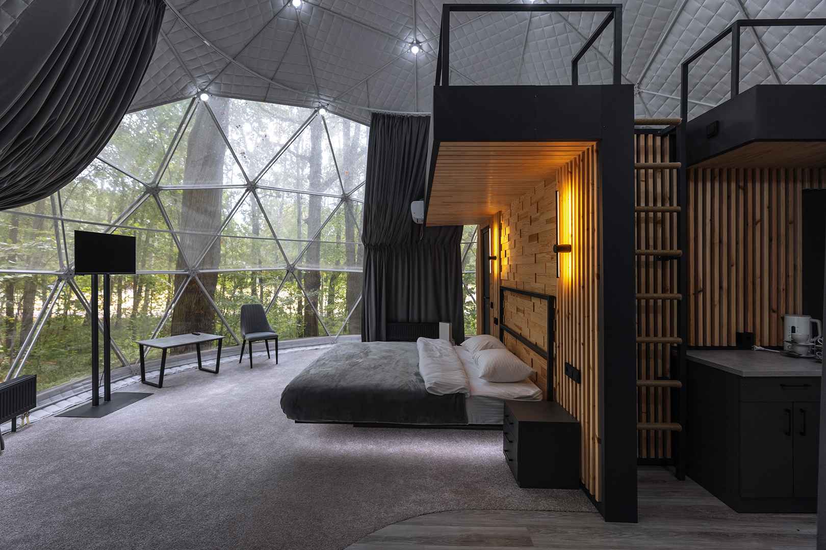 Тип глэмпинга:А-фрейм, Дом в лесу, Дом на воде, Дом на дереве, Зеркальный дом, Купол, Модульный дом, Типи