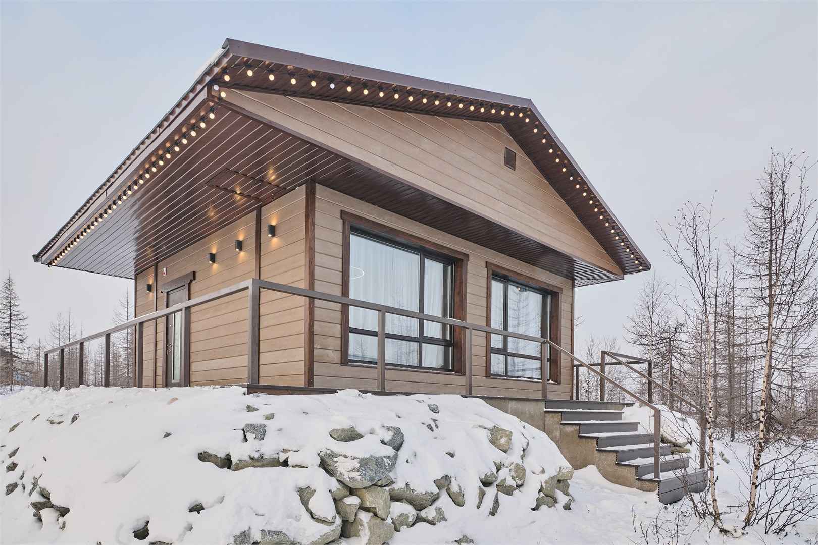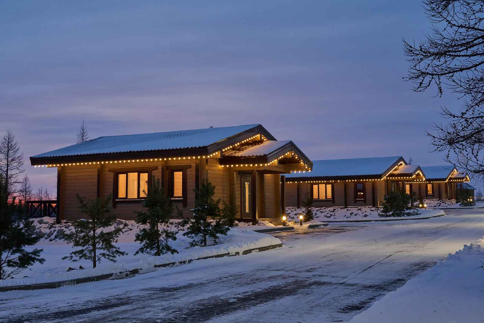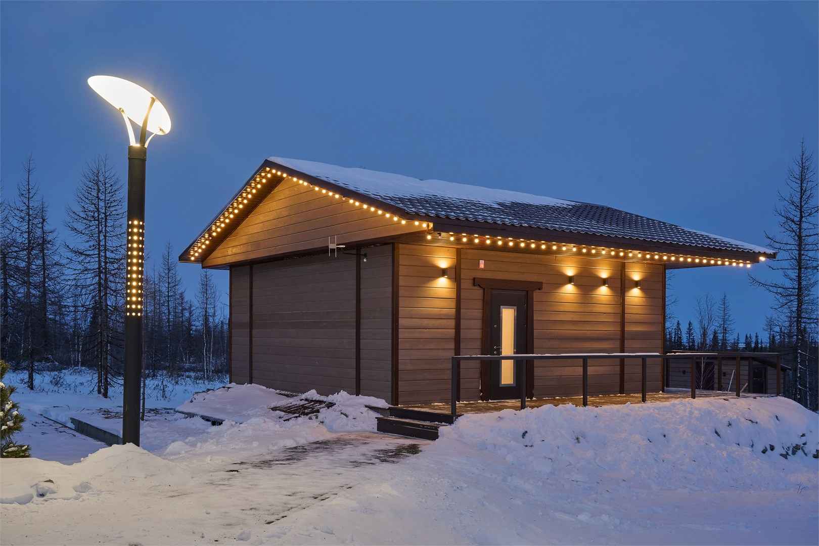 Ямал Парк – это уютный глэмпинг на Полярном Круге, расположенный в живописном уголке Крайнего Севера, всего в 12 км от Салехарда. Территория загородного комплекса погружает в нетронутую природу Ямало-Ненецкого автономного округа, где гости могут застать северное сияние через панорамные окна своих домиков, насладиться чистым лесным воздухом и наблюдать за красавицей-рекой Обь. Для проживания в глэмпинге Ямал Парк доступны три варианта размещения: уютный утепленный купол и два эко-домика с террасами — «Волк» и «Медведь», каждый из которых вмещает до 4 человек. Активный отдых на свежем воздухе дополняет банный комплекс «Ямальские бани», включающий аромасауну «Морошка», хаммам «Брусника» и традиционную баню «Черника». У отдыхающих есть возможность понаблюдать за северными животными: волком, лисицей и песцом, о которых бережно заботятся хозяева. Зимой в глэмпинге особенно волшебно — уединение среди заснеженных пейзажей позволяет по-настоящему перезагрузиться от городской суеты.