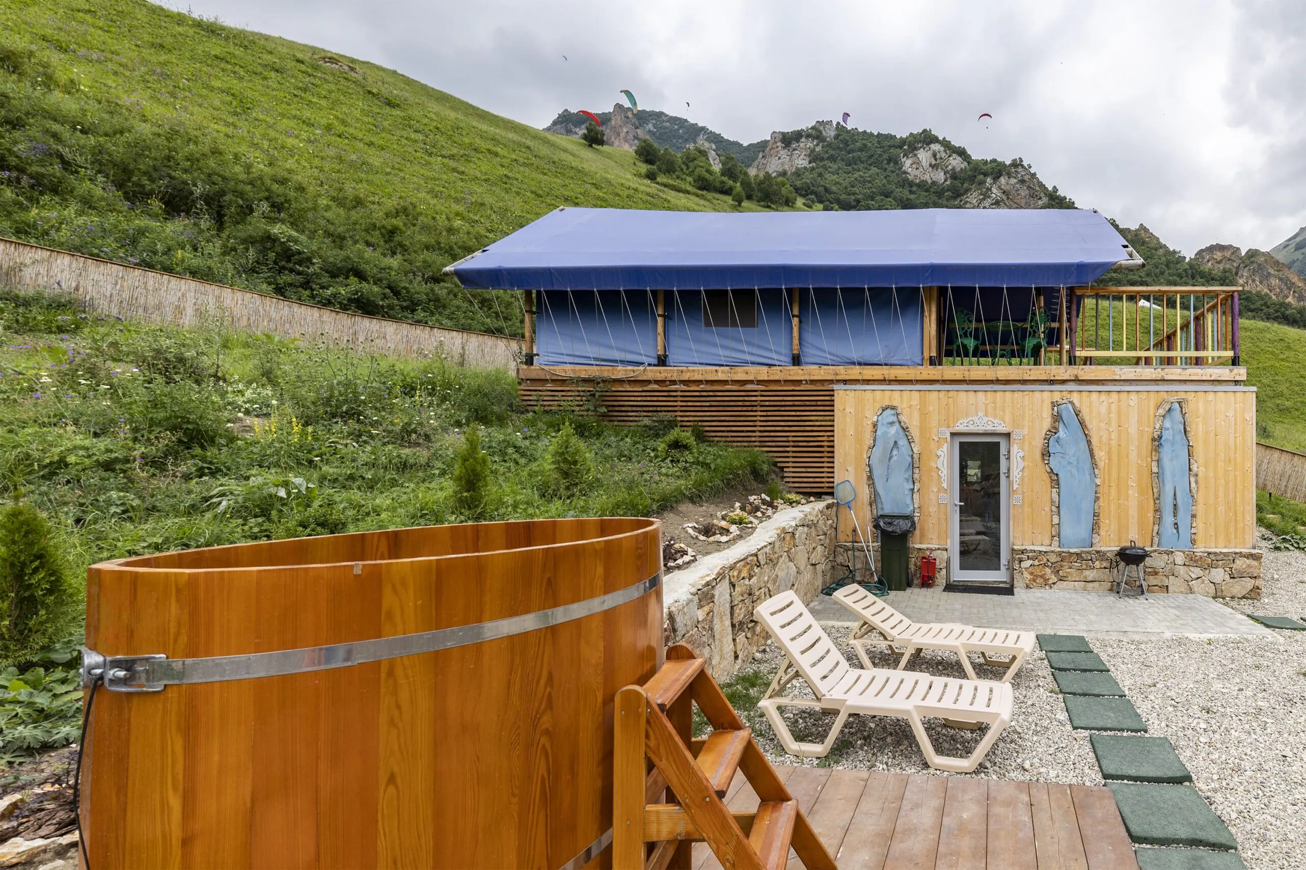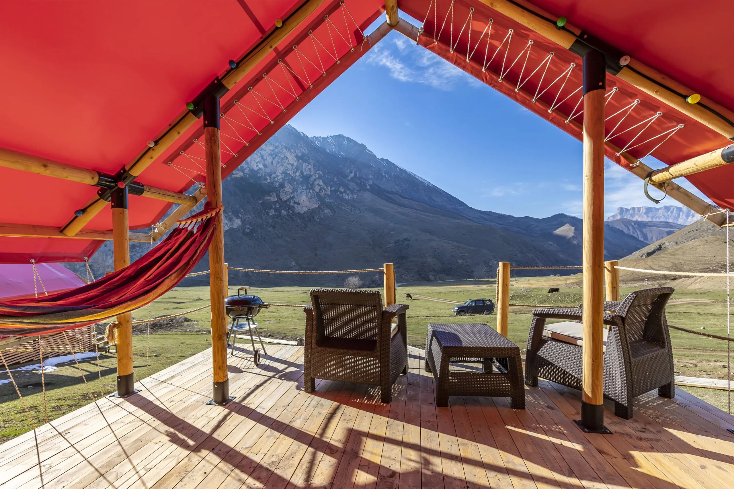 Глэмпинг "O2kislorod" — это современное пространство для комфортного отдыха в горах Кабардино-Балкарии, где гости могут насладиться первозданной природой Кавказа без отказа от привычных удобств. Комплекс расположен в живописной местности Чегемского ущелья, окруженной величественными горными вершинами и альпийскими лугами.