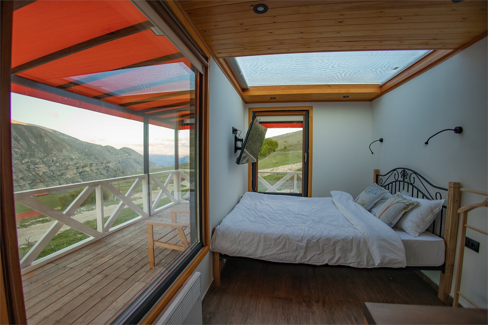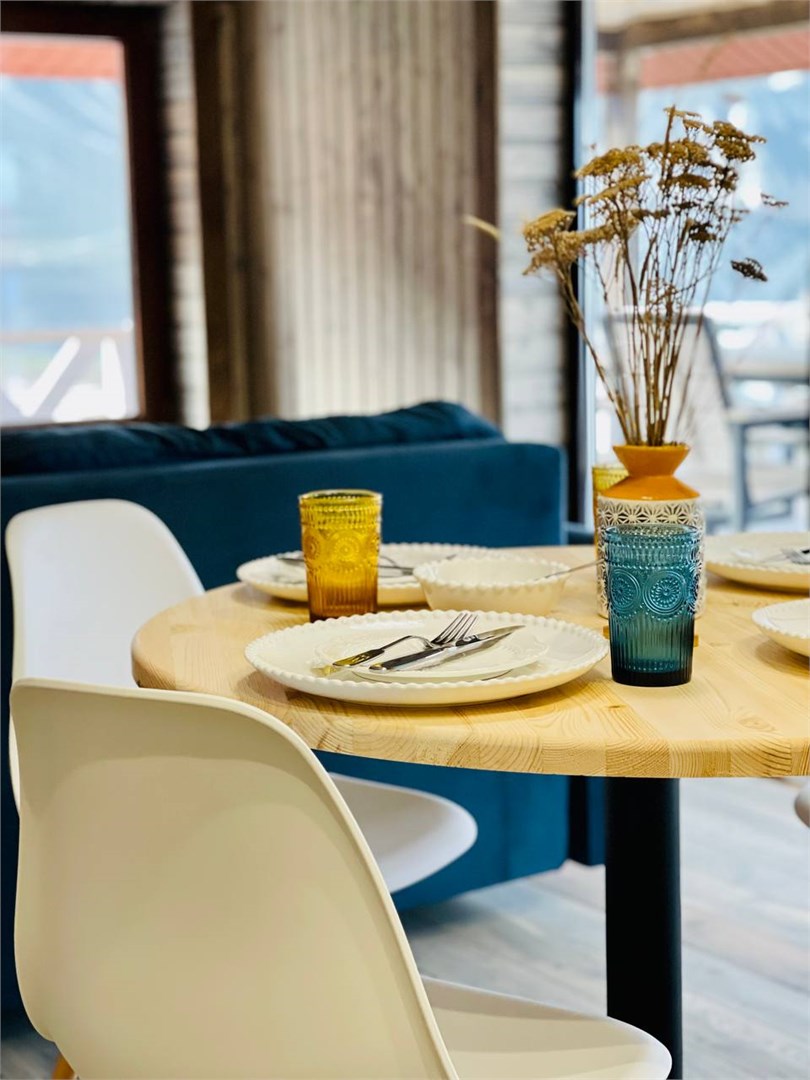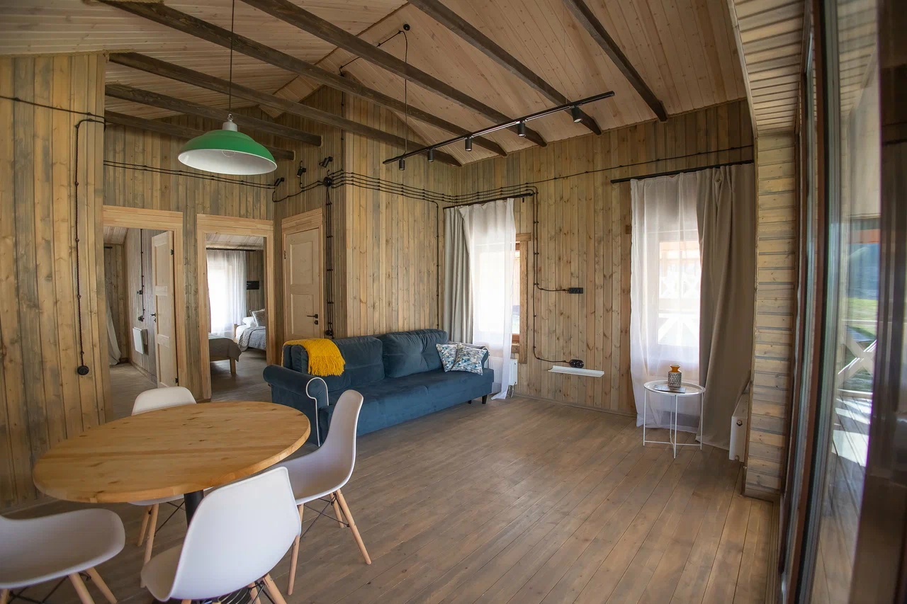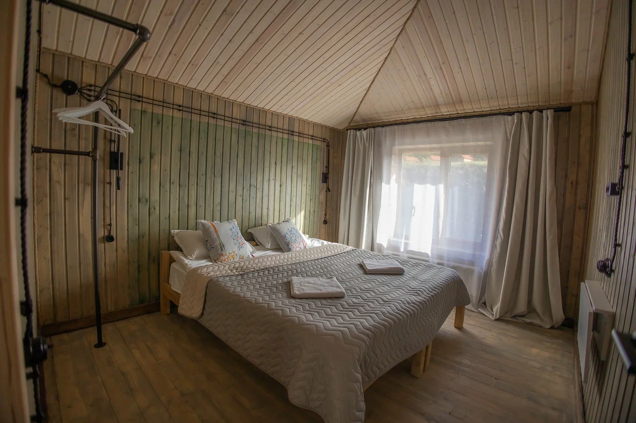 Размещение представлено двумя отдельно стоящими шале, каждое из которых располагает собственной прилегающей территорией. Гости найдут здесь продуманное сочетание природной красоты и современных удобств: в домиках установлена система тёплых полов, обеспечивающая комфорт даже в прохладные горные вечера. Несмотря на удалённость от цивилизации, на территории работает стабильный интернет.