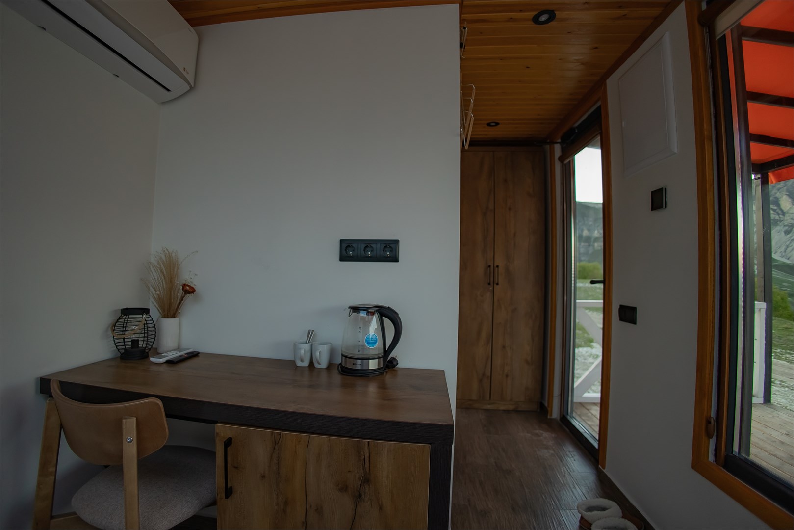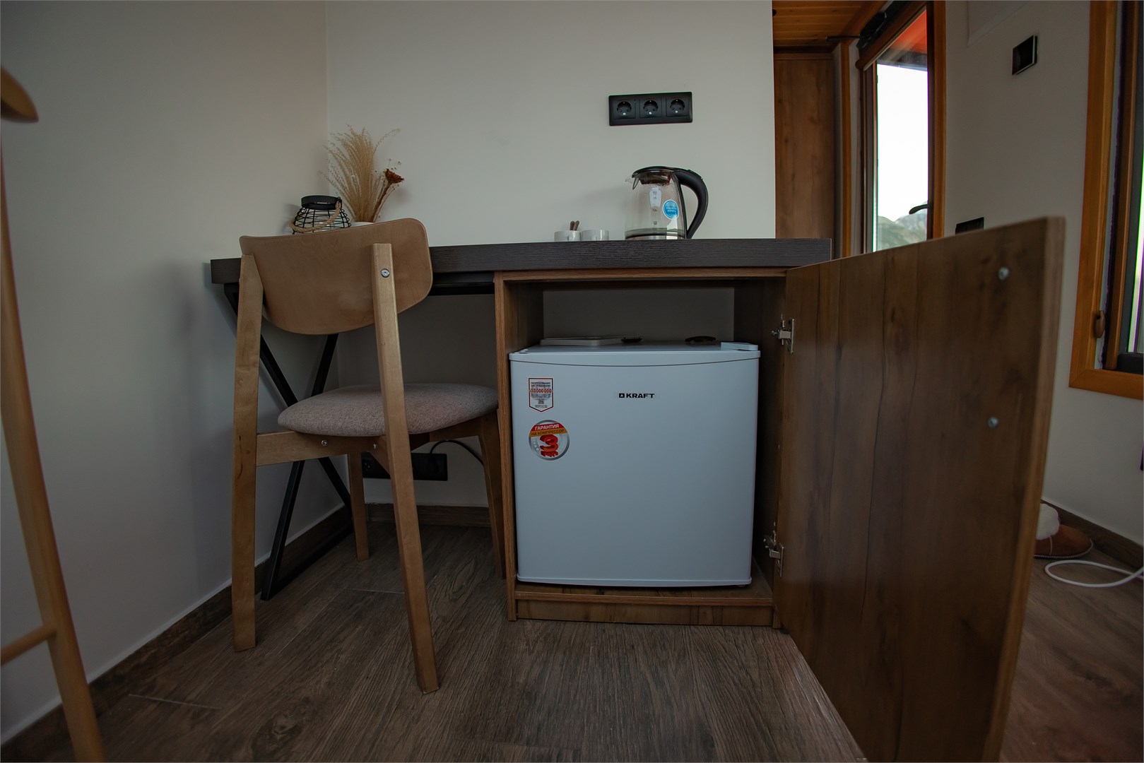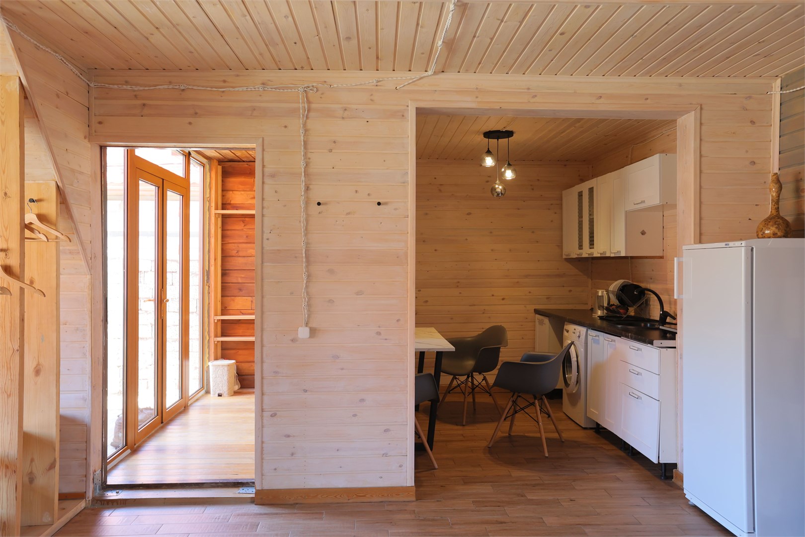 Размещение представлено двумя отдельно стоящими шале, каждое из которых располагает собственной прилегающей территорией. Гости найдут здесь продуманное сочетание природной красоты и современных удобств: в домиках установлена система тёплых полов, обеспечивающая комфорт даже в прохладные горные вечера. Несмотря на удалённость от цивилизации, на территории работает стабильный интернет.