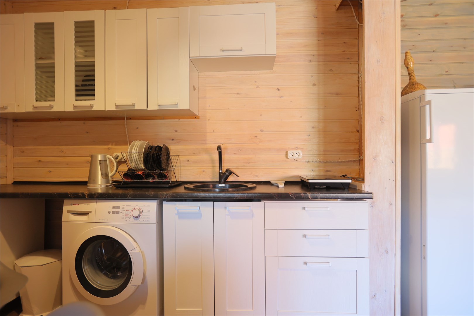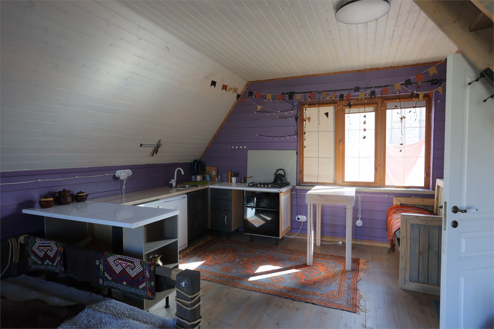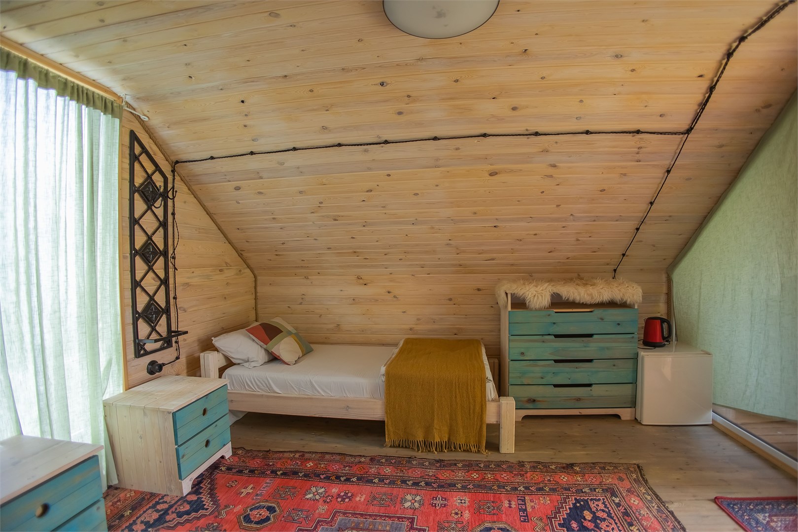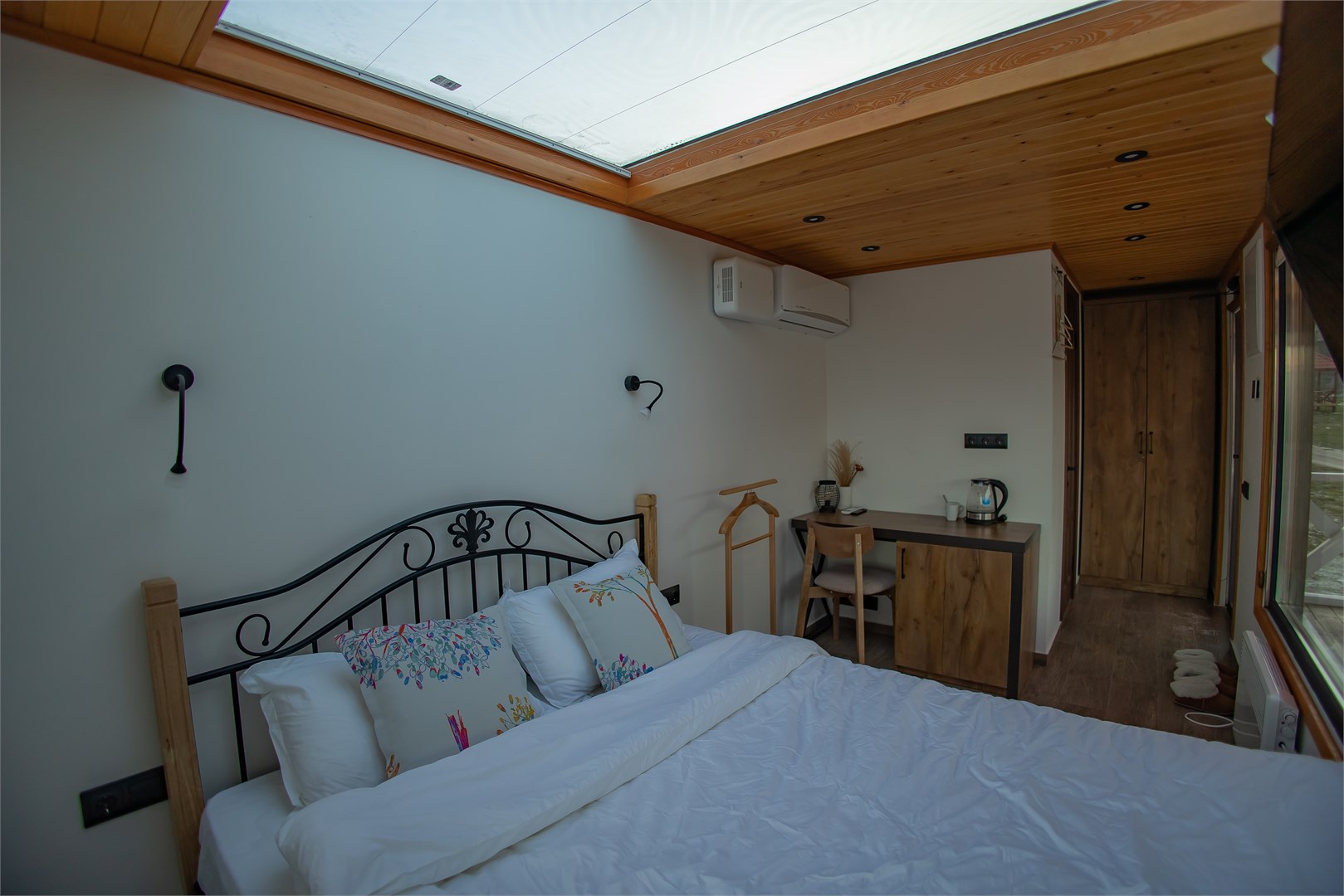 Размещение представлено двумя отдельно стоящими шале, каждое из которых располагает собственной прилегающей территорией. Гости найдут здесь продуманное сочетание природной красоты и современных удобств: в домиках установлена система тёплых полов, обеспечивающая комфорт даже в прохладные горные вечера. Несмотря на удалённость от цивилизации, на территории работает стабильный интернет.