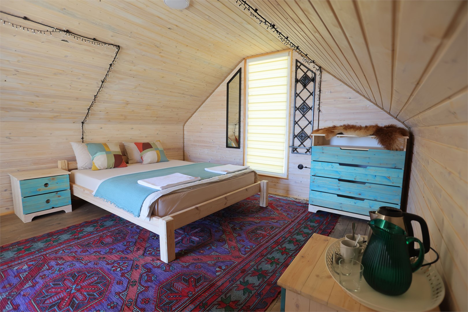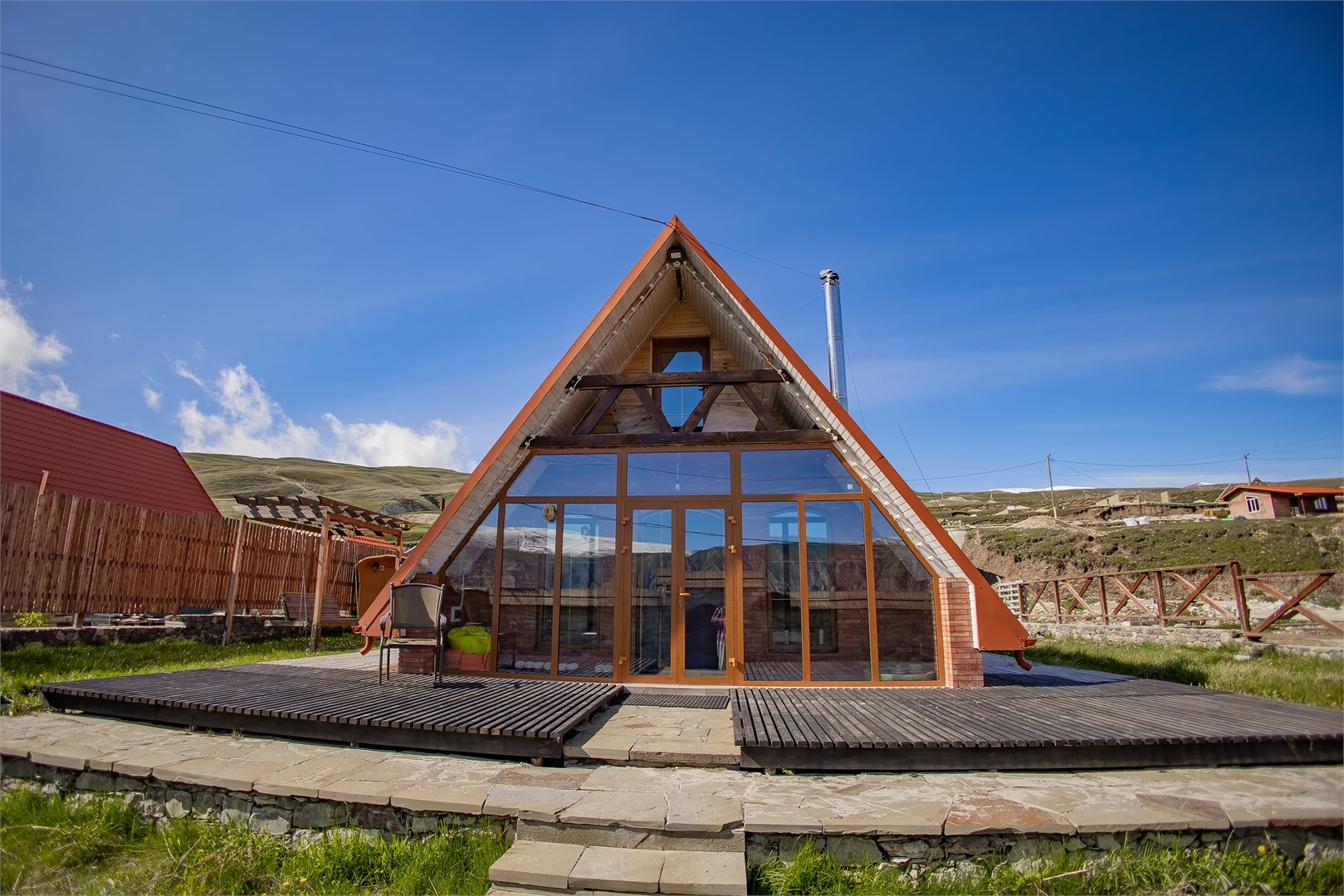 Для проживания доступны коттеджи с панорамным видом на горы, откуда открываются захватывающие дух пейзажи на окружающие вершины. На территории комплекса работает горное кафе, специализирующееся на традиционной кухне. Шеф-повар готовит блюда по аутентичным рецептам, используя свежие местные продукты, домашний сыр и хлеб собственной выпечки. Приобретая продукцию у жителей окрестных селений, комплекс поддерживает местное сообщество.
