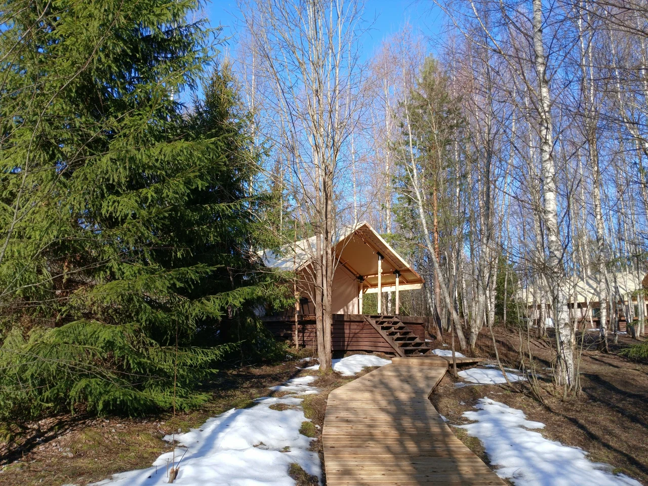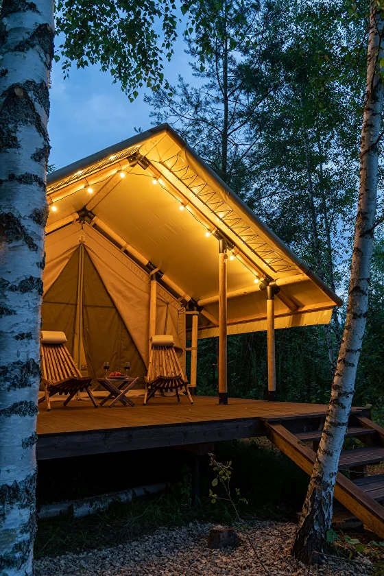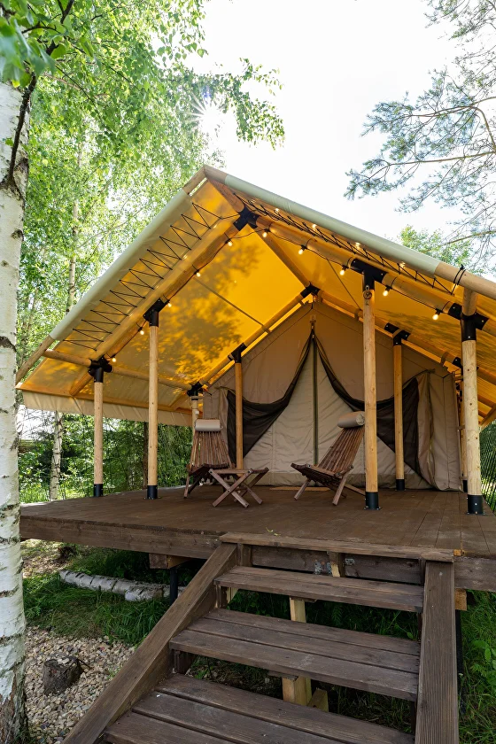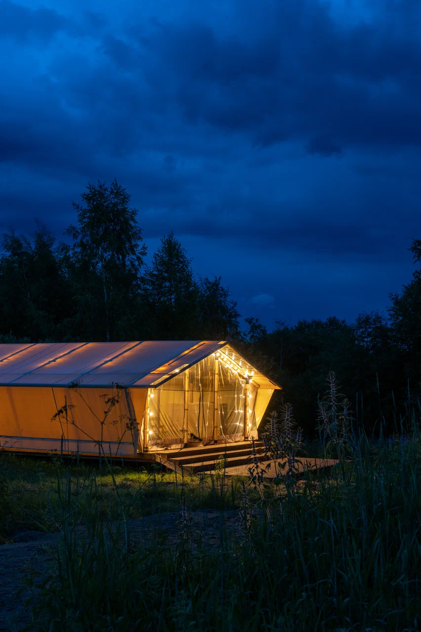 Глэмпинг окружён густыми северными лесами и водоёмами с чистейшей водой — здесь можно по-настоящему выдохнуть, забыв о городской суете. Гостей ждут уютные, стильные шатры, оборудованные всем необходимым для комфортного проживания. Каждый объект размещения органично вписан в природный ландшафт и продуман до мелочей, чтобы отдых получился максимально приятным.