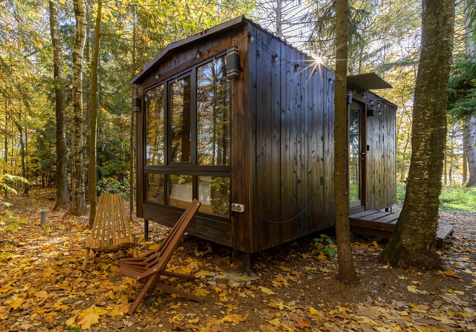 Тип глэмпинга:А-фрейм, Дом в лесу