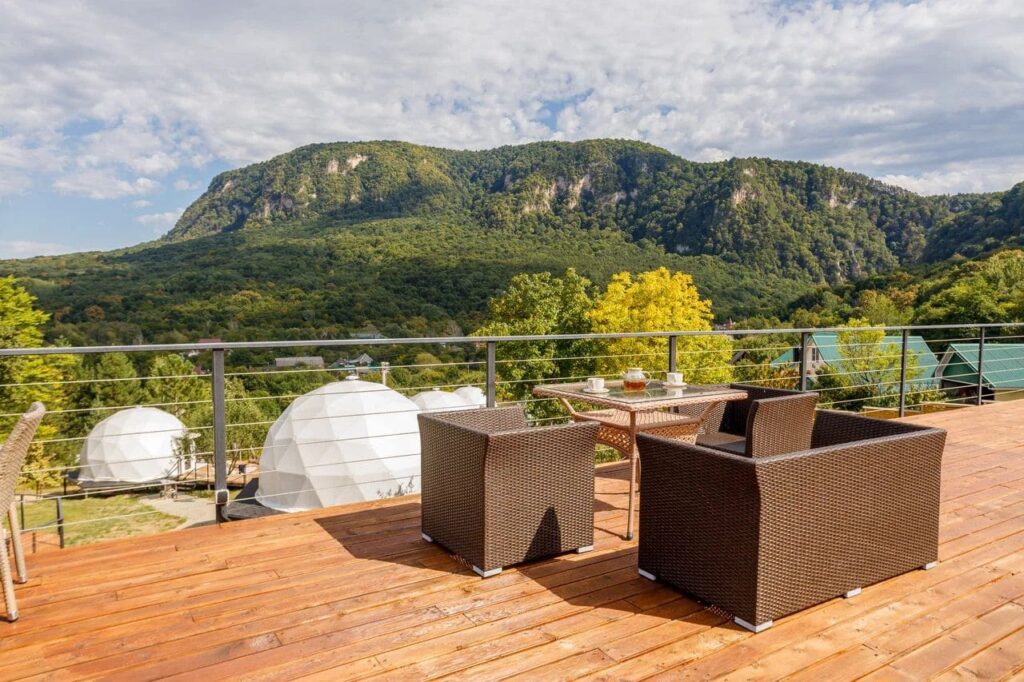 Тип глэмпинга:А-фрейм, Купол, Модульный дом
